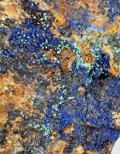 Metazeunerite, Azurite, Dolomite: attr. to Schwartzwalder mine, Ralston Buttes, Jefferson Co., Colorado