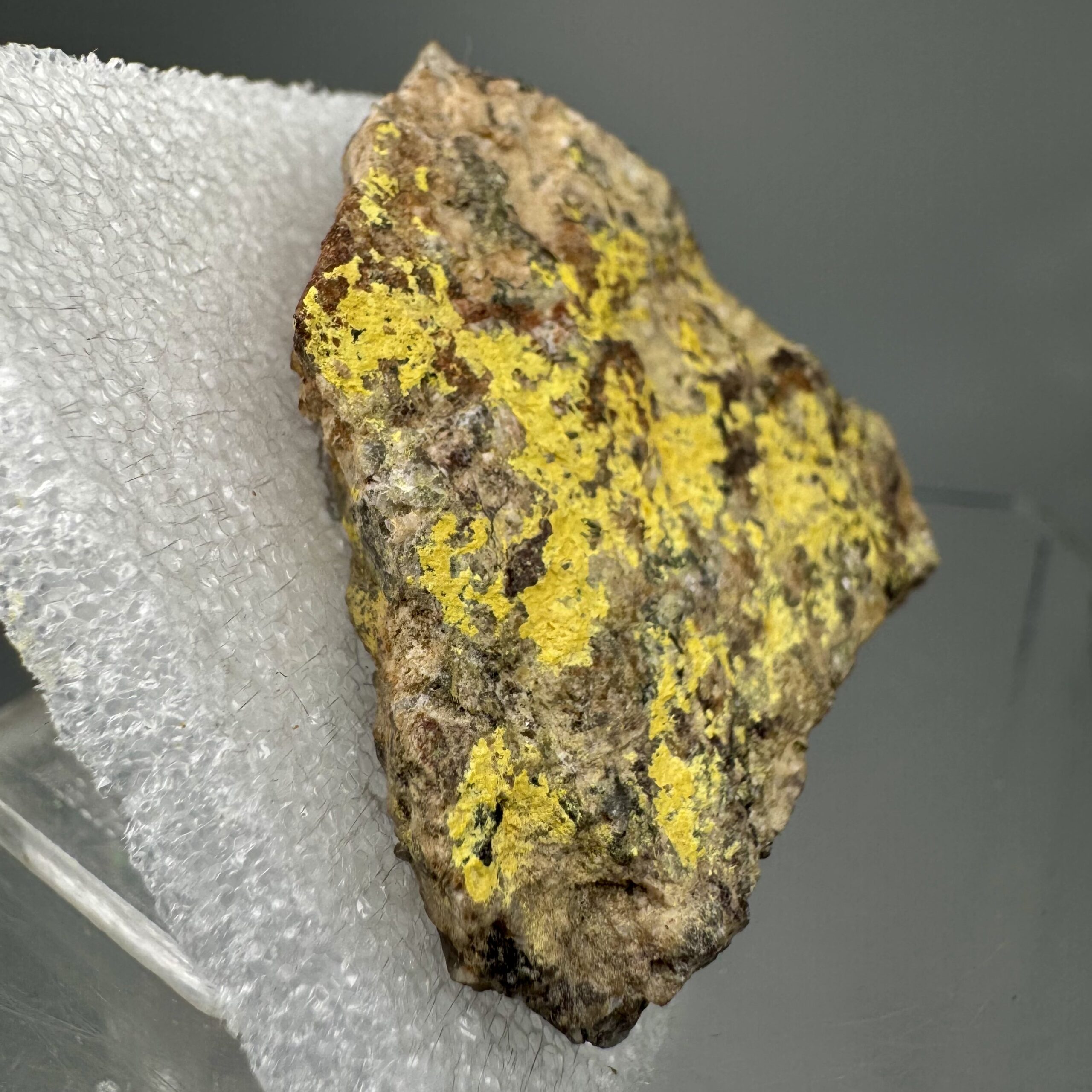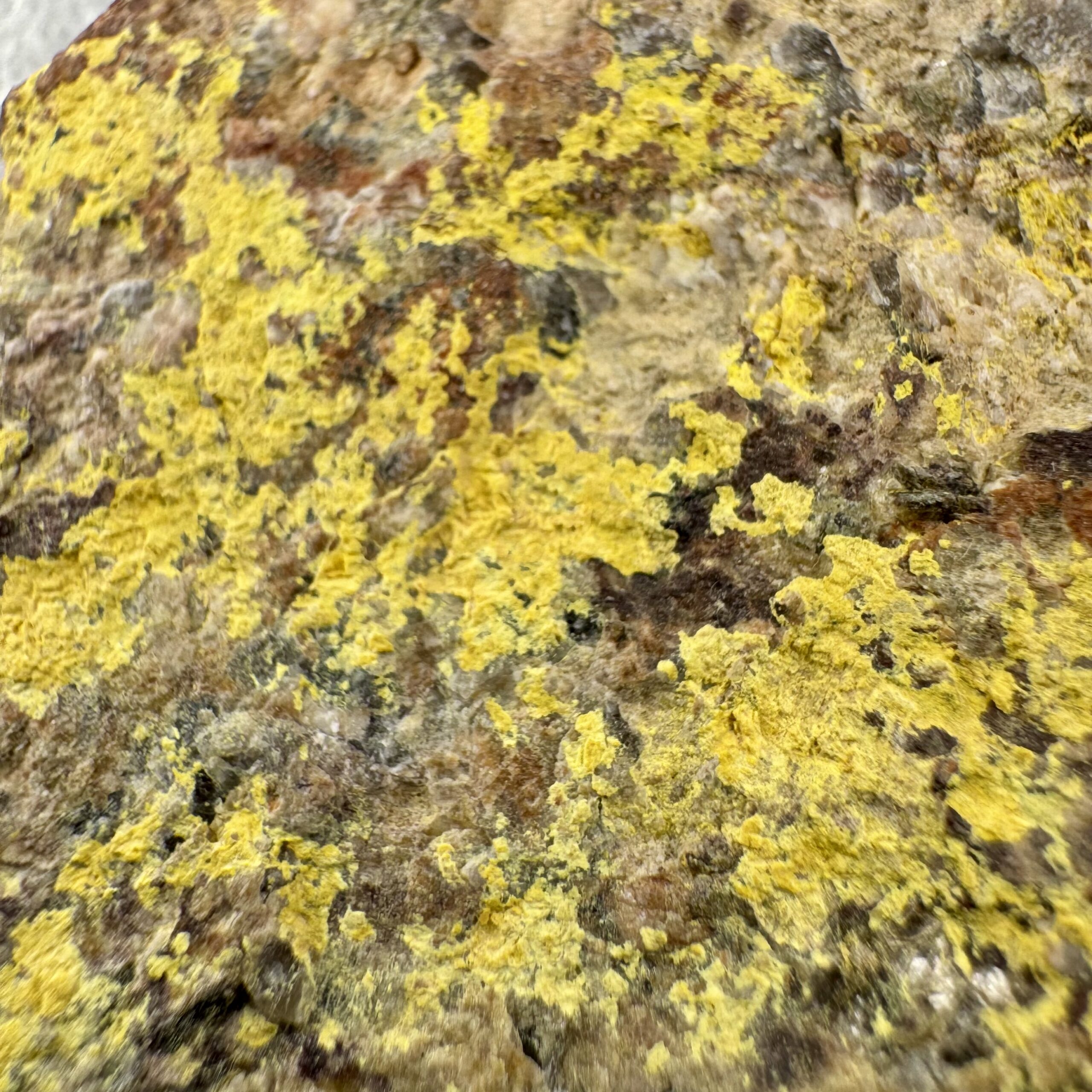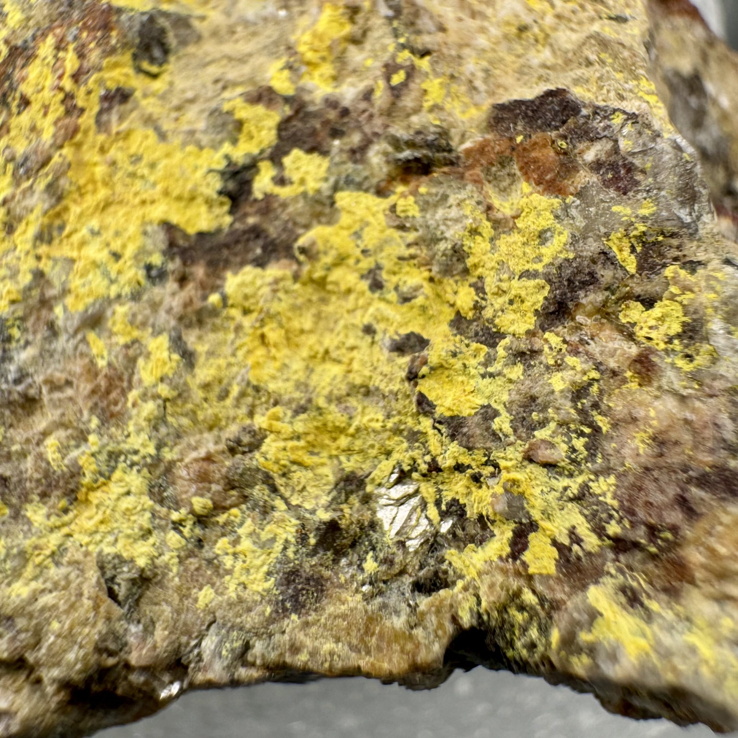 Very nice specimen of bright yellow Bergenite on matrix from the Streuberg Quarry, Bergen, Vogtlandkreis, Saxony, Germany. Rare!