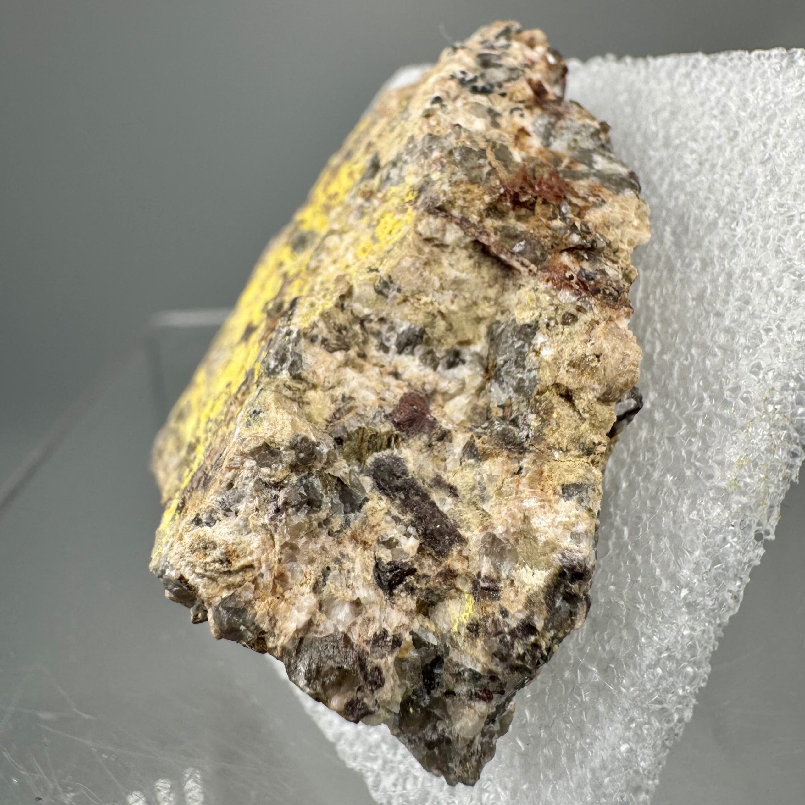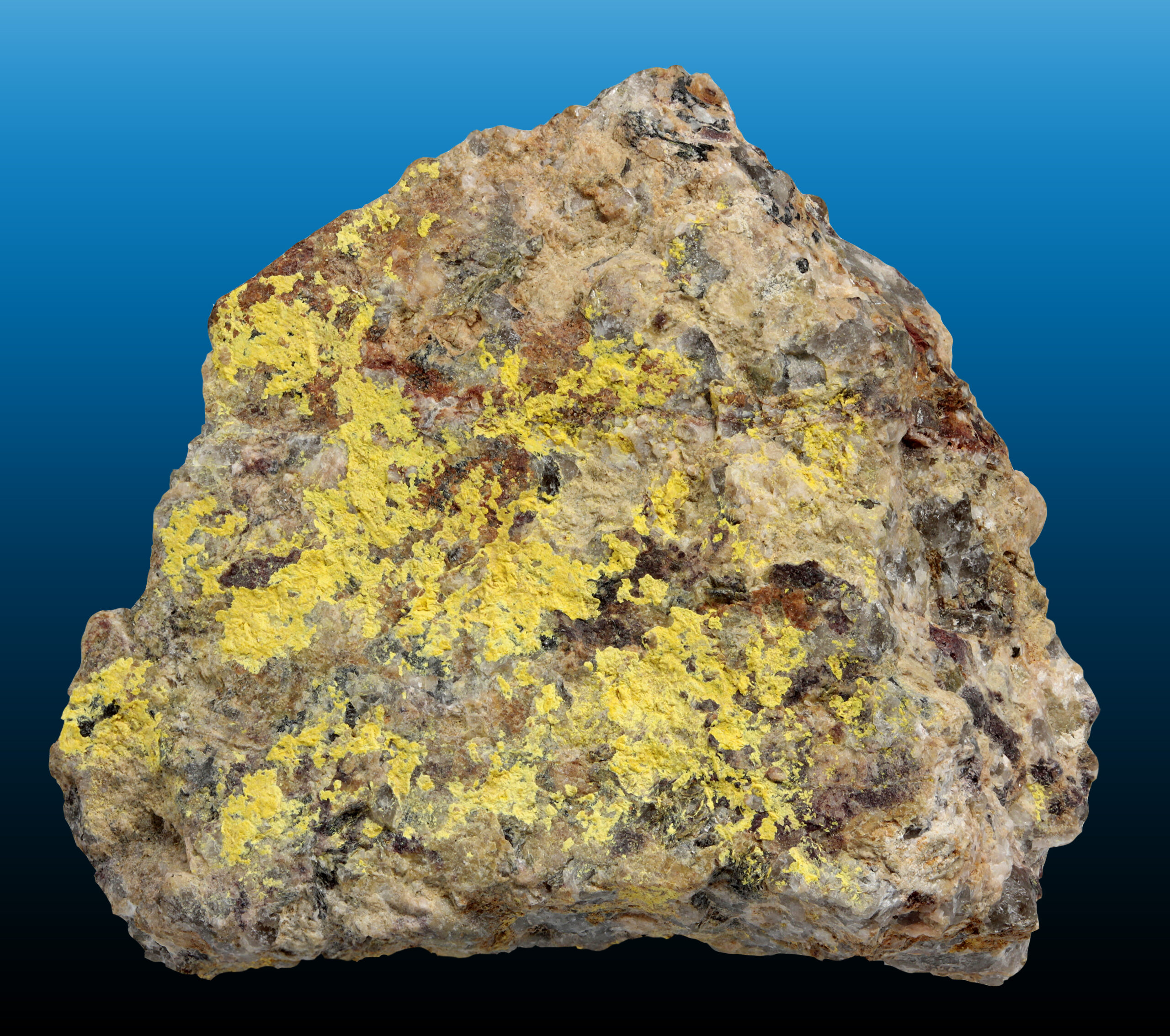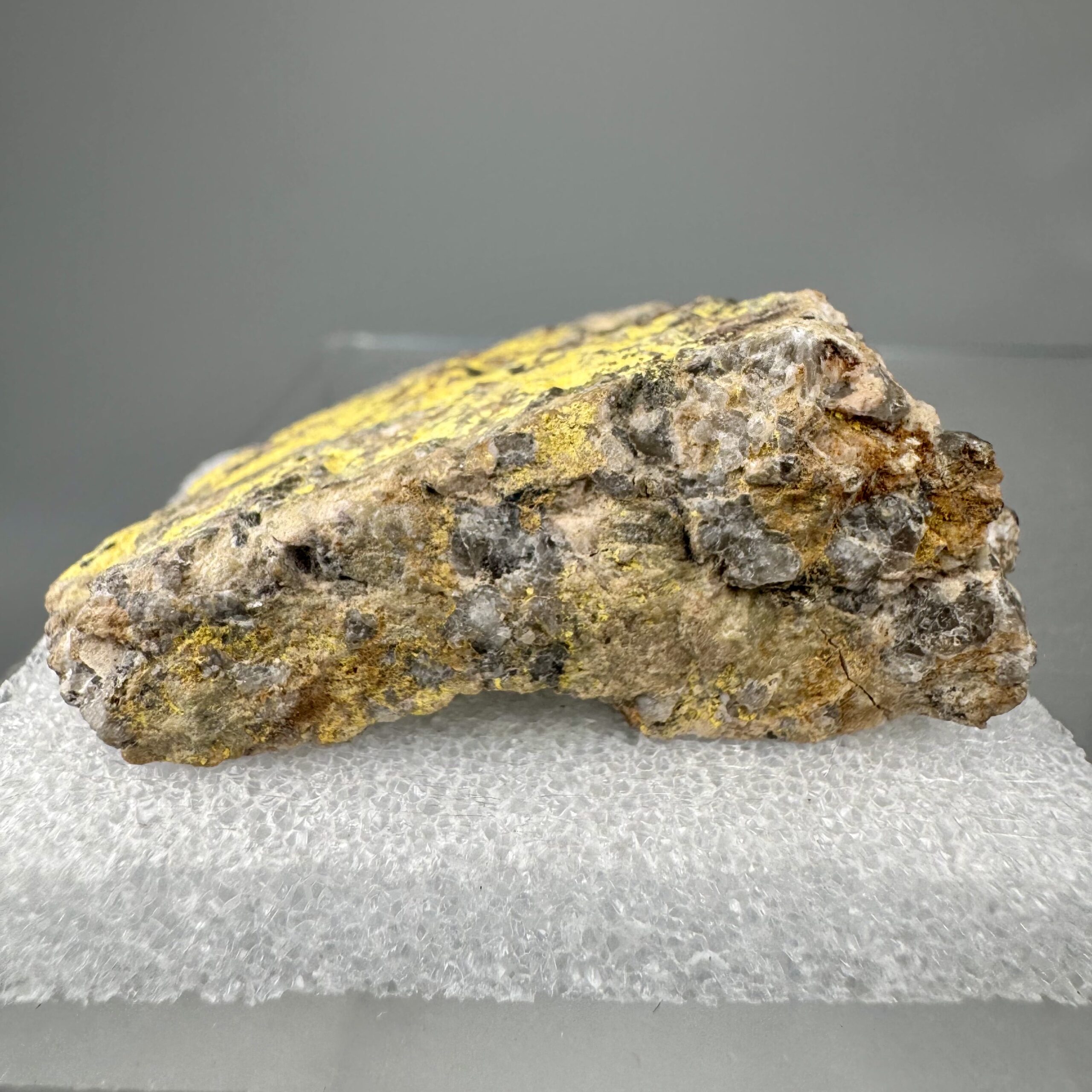 Very nice specimen of bright yellow Bergenite on matrix from the Streuberg Quarry, Bergen, Vogtlandkreis, Saxony, Germany. Rare!