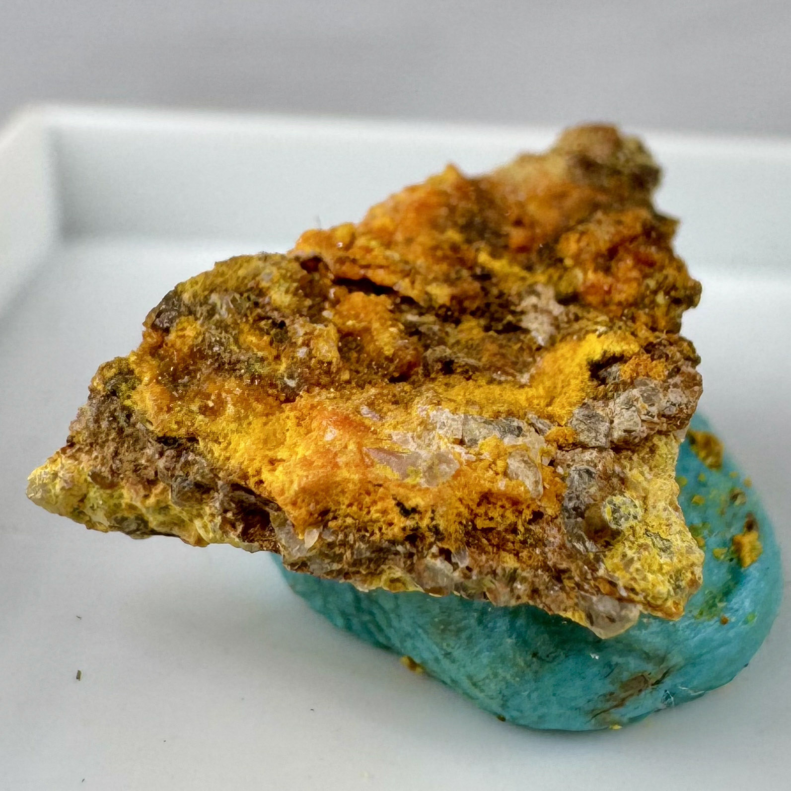 Nice small specimen of well-crystallized yellow Billietite and Kasolite from the famous Shinkolobwe Mine, Shinkolobwe, Kambove, Haut-Katanga, DR Congo. Rare and sought-after material!
