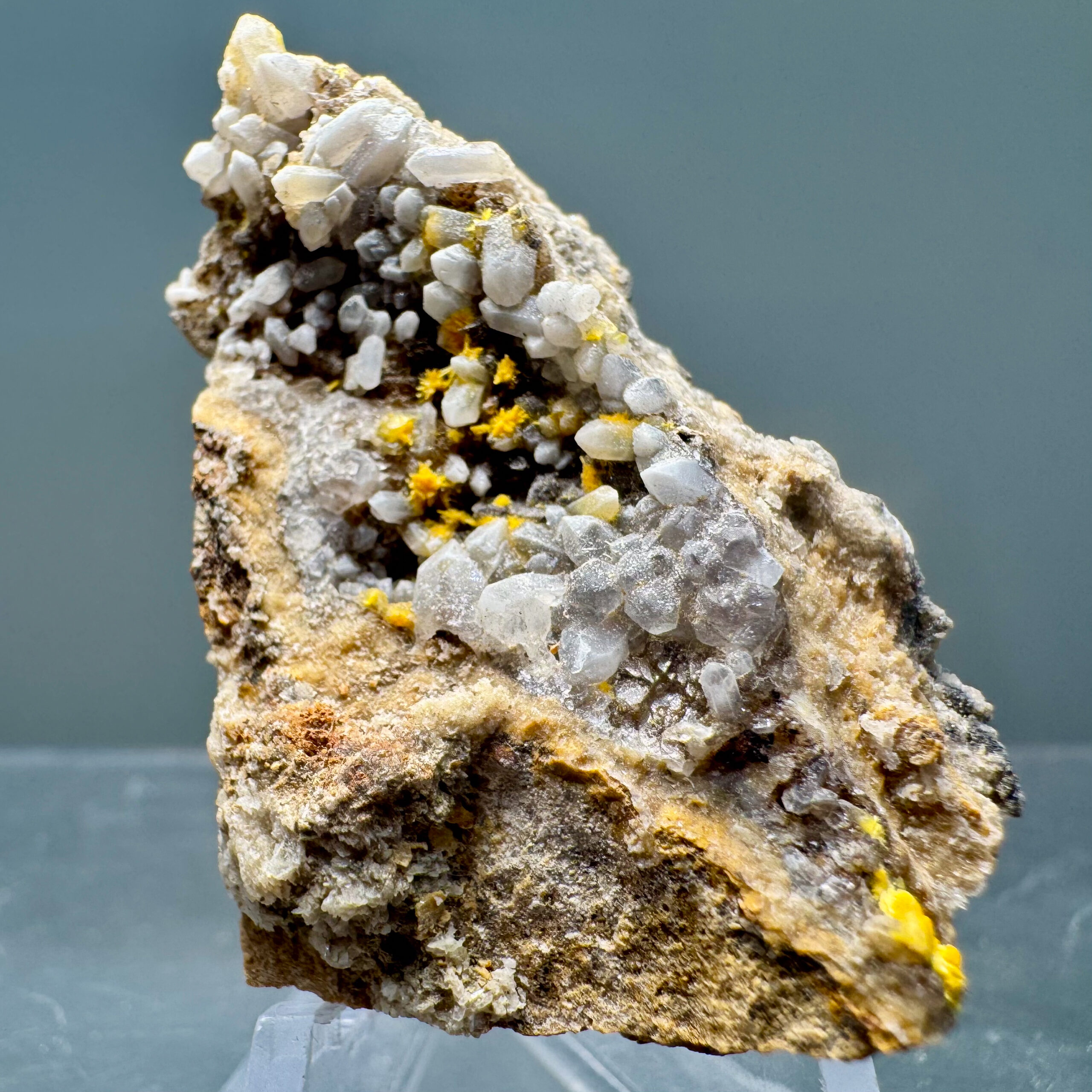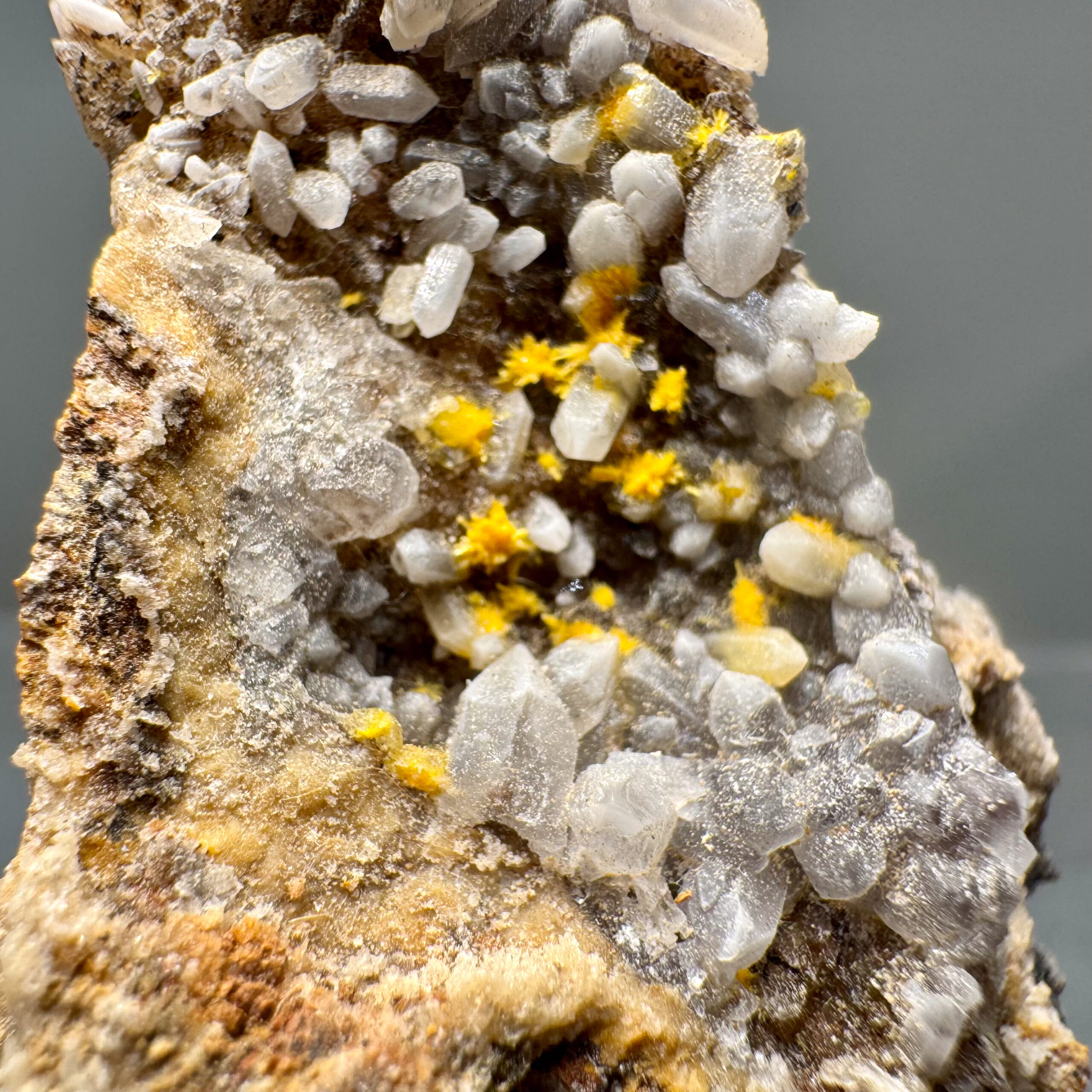 Nicely-crystallized yellow Boltwoodite from the Goanikontes Claim, Goanikontes, Arandis Constituency, Erongo Region, Namibia. Classic!