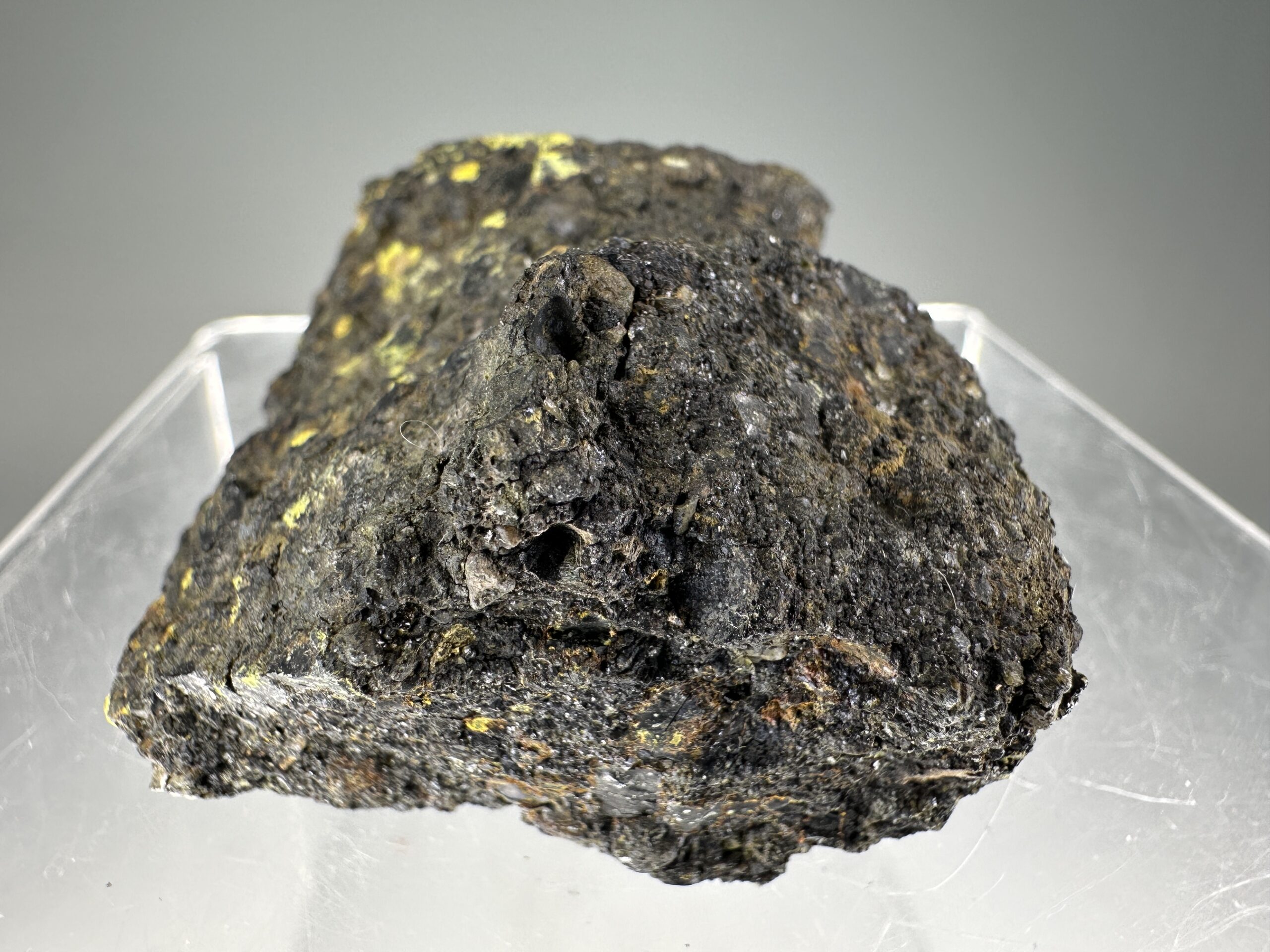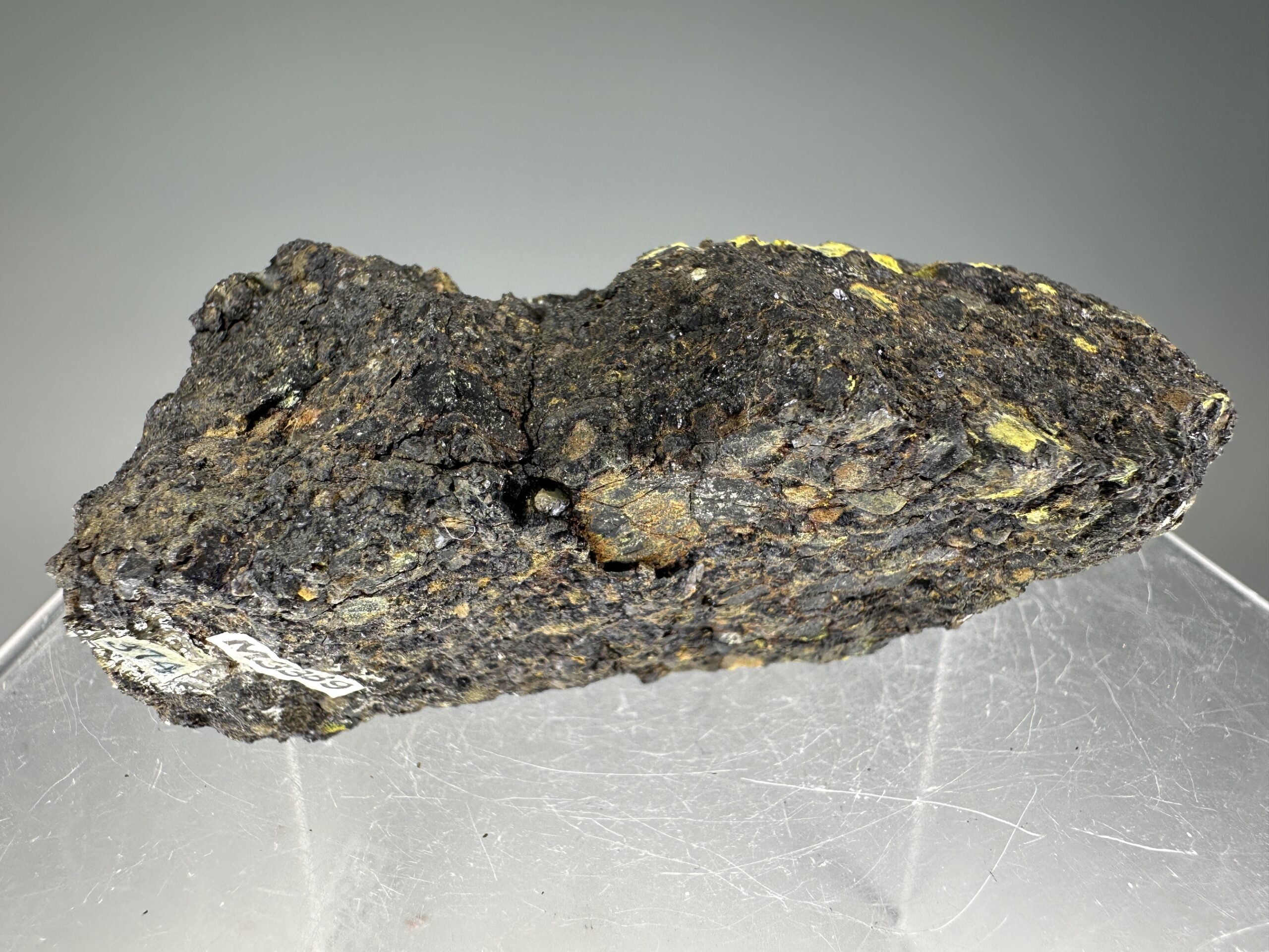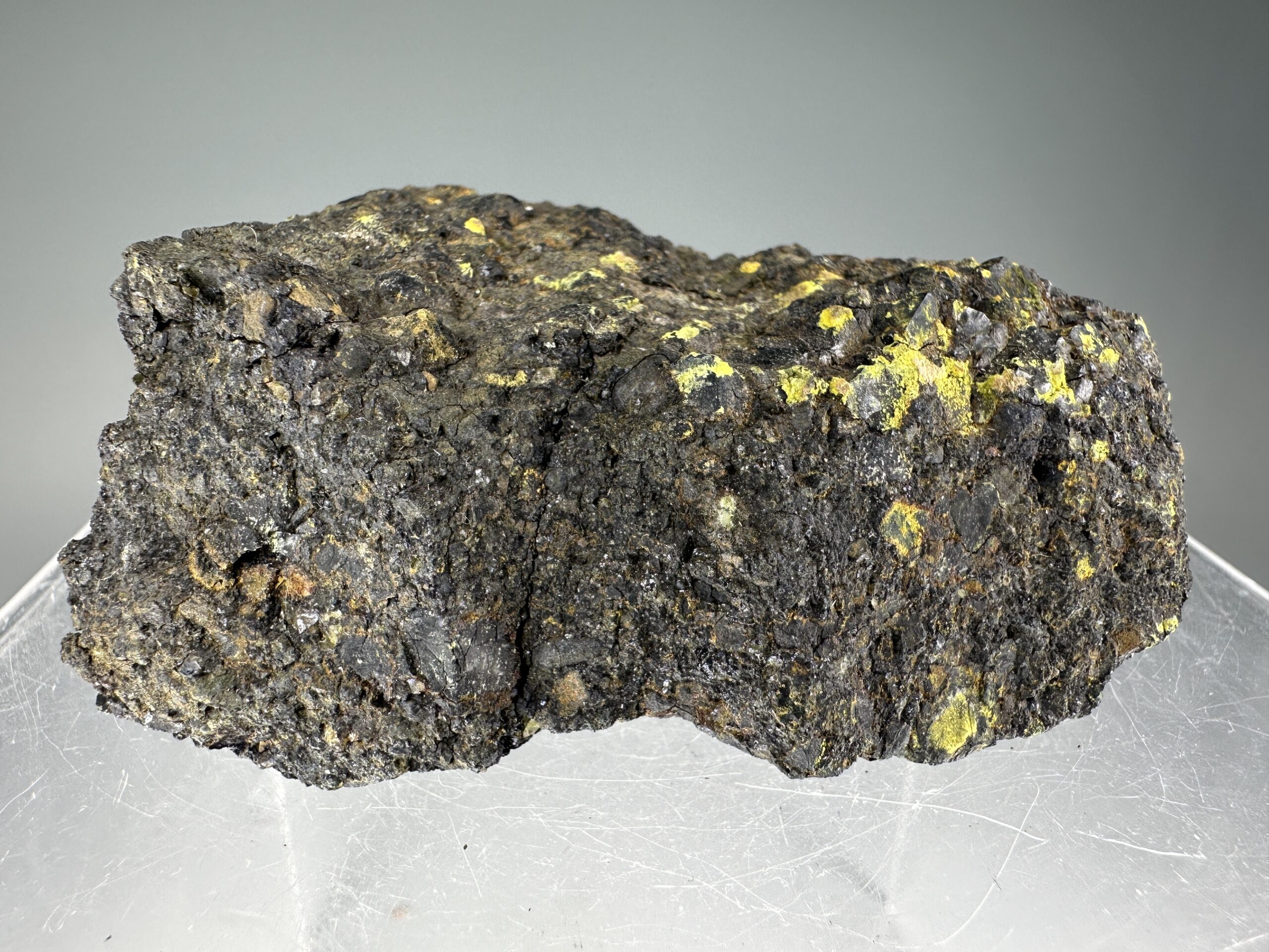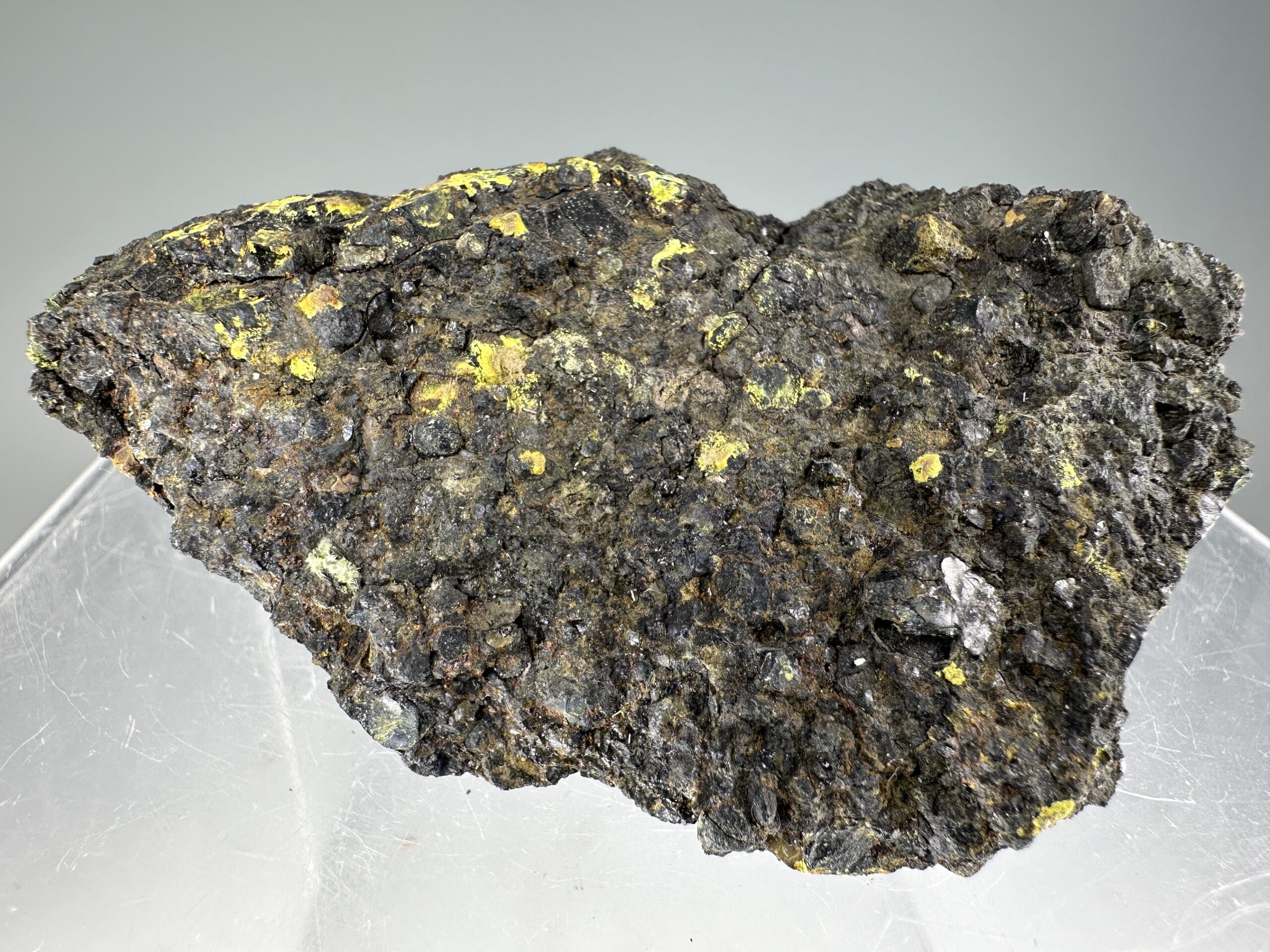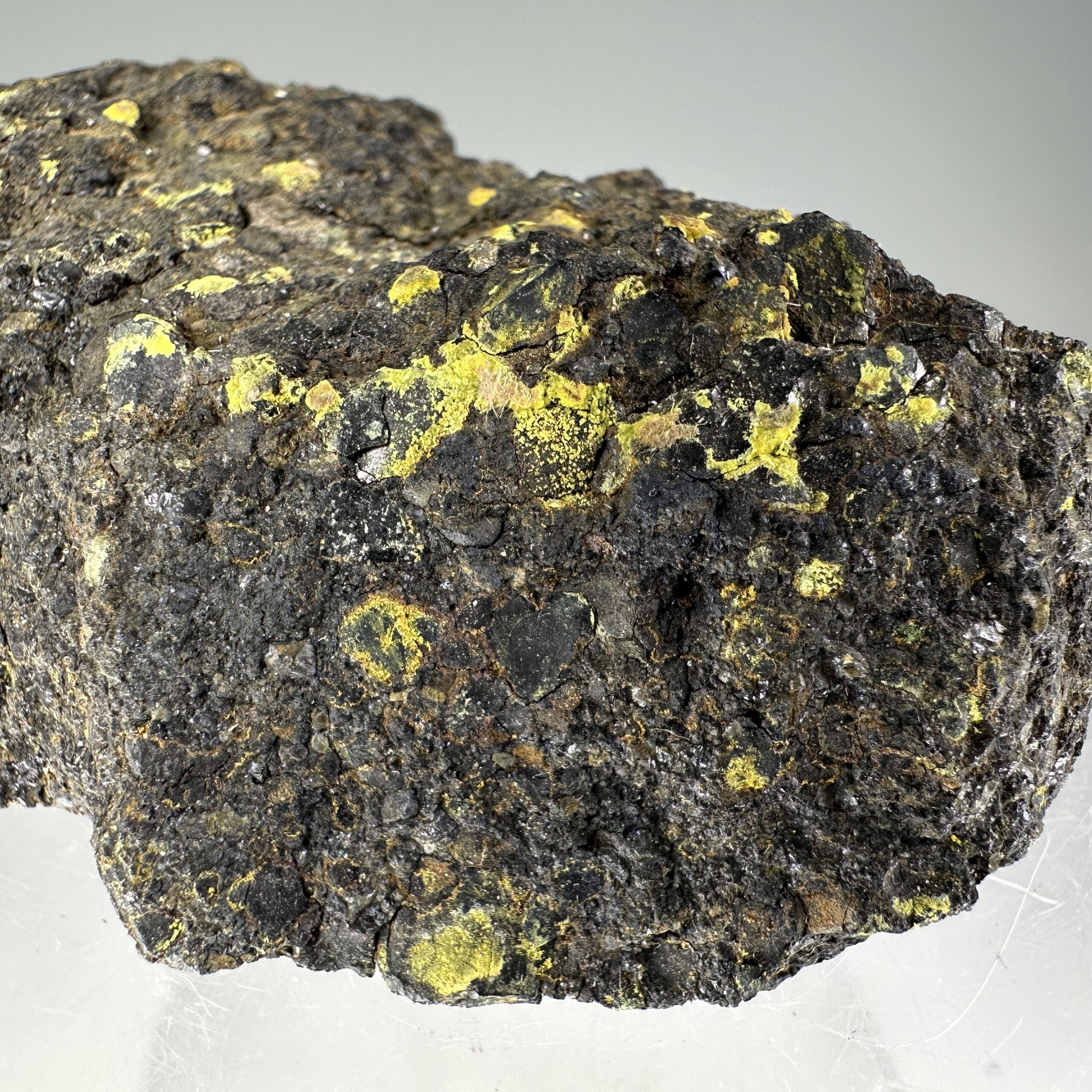 Nice rich specimen of yellow Uranophane on a matrix of Coffinite and Uraninite-impregnated sandstone from Temple Mountain, Emery County, Utah, USA. Rare!