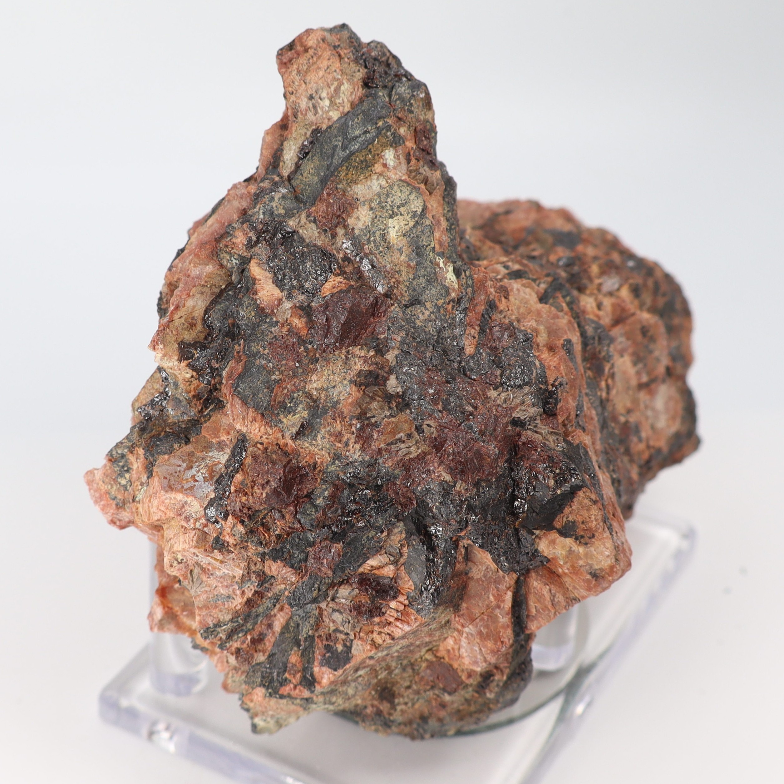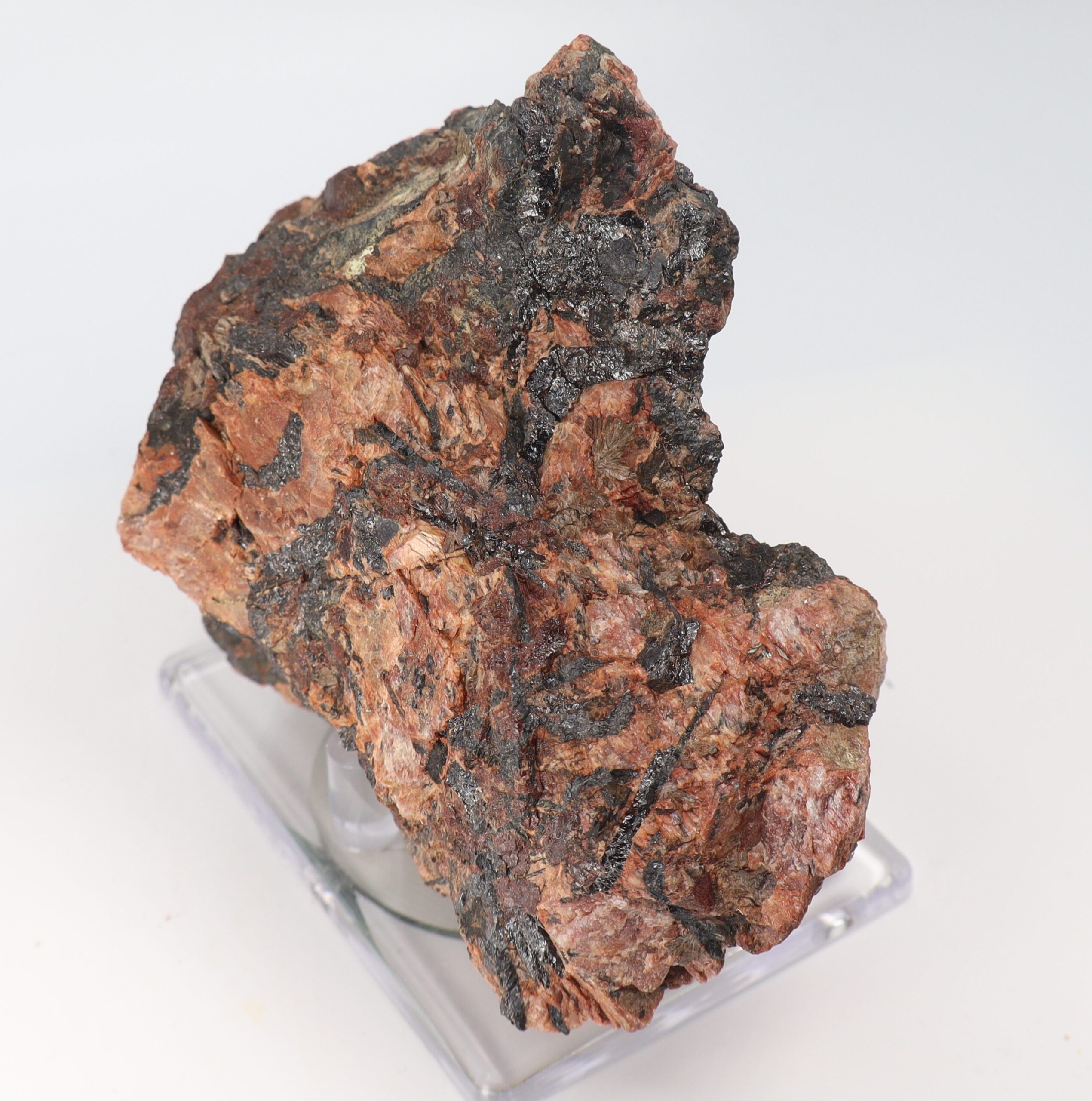 Fine large, rich specimen of Euxenite-(Y) in pegmatite matrix with Allanite-(Ce) crystals from the famous and classic Beryl Pit, Quadville, Renfrew County, Ontario, Canada. Very nice for this species at the locality. Ex. Eric Quinter Collection. Rare!