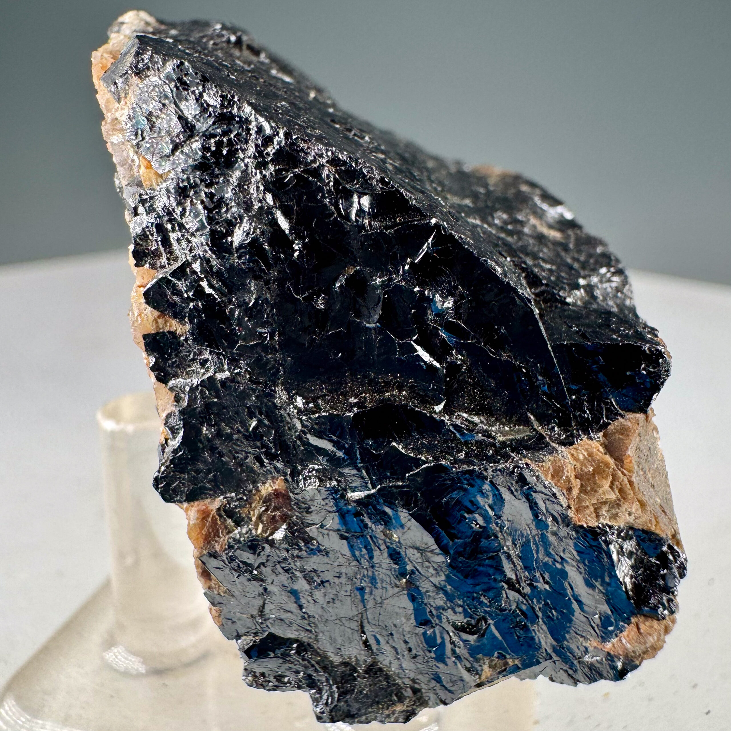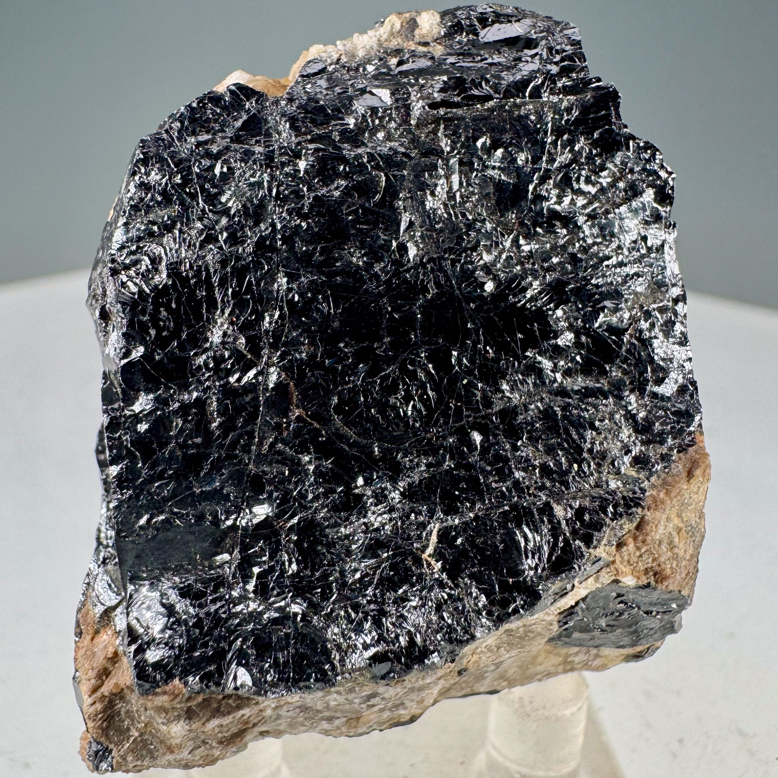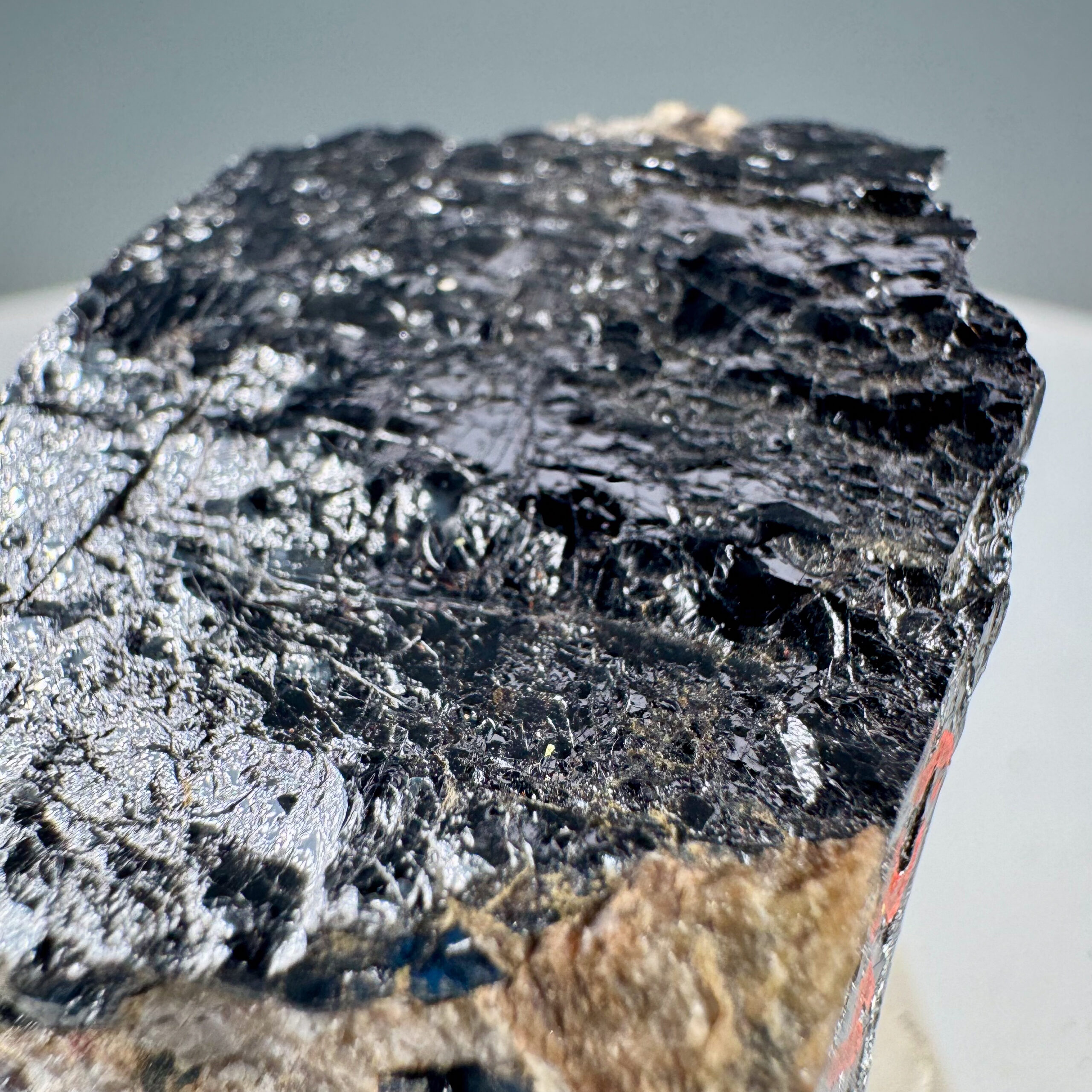 Nice large solid specimen of waxy black Euxenite-(Y) from Norway with a neat antique label. Measures ~35,000 CPM on my Ludlum Model 3 Counter with the 44-9 probe. Rare!