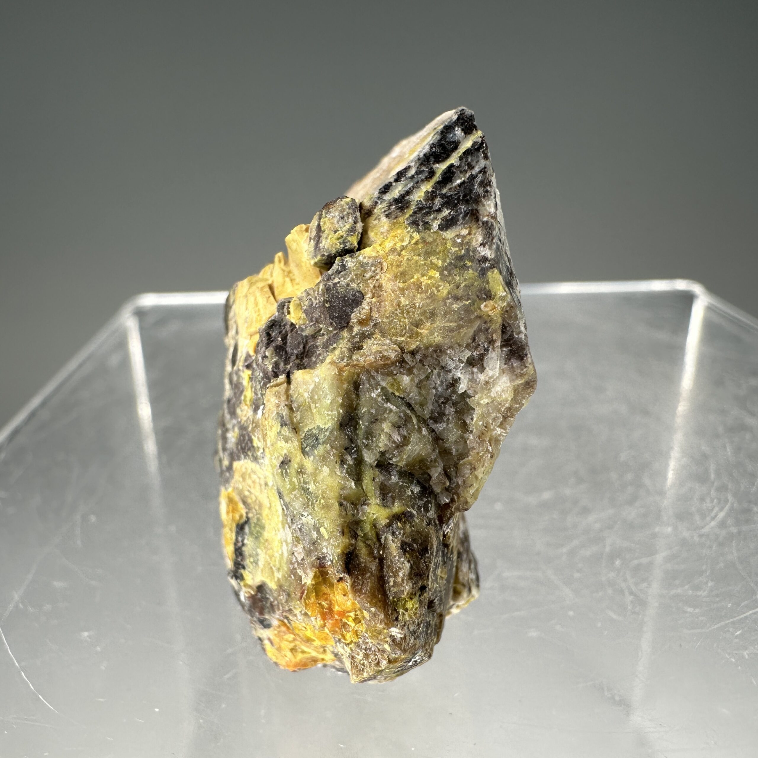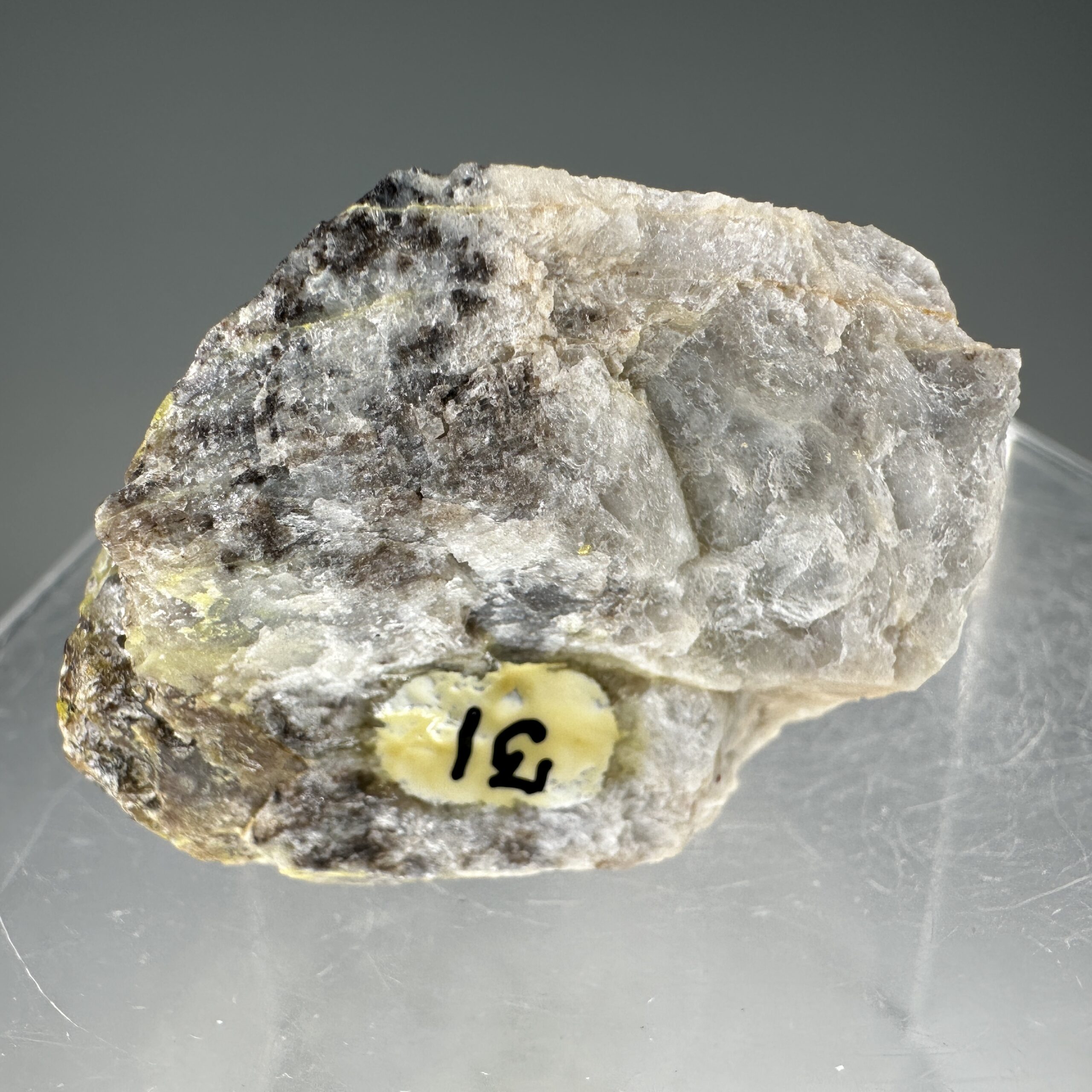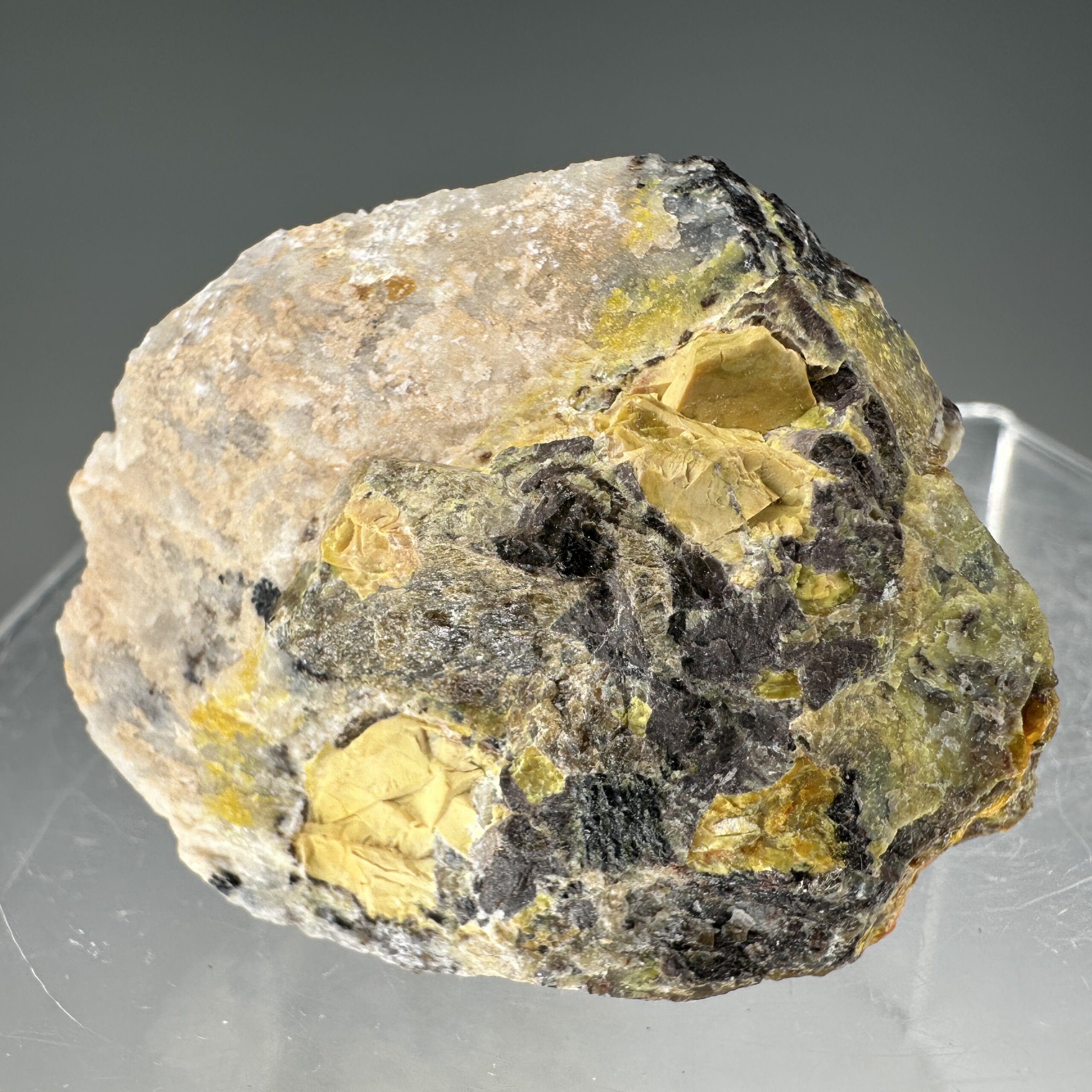 Fine, rich specimen of colorful “Gummite”, Uraninite, and Cyrtolite in pegmatite matrix from the Spruce Pine Mining District, North Carolina, USA. Meausres ~45,000 CPM on my Ludlum Model 3 Counter with the 44-9 probe.