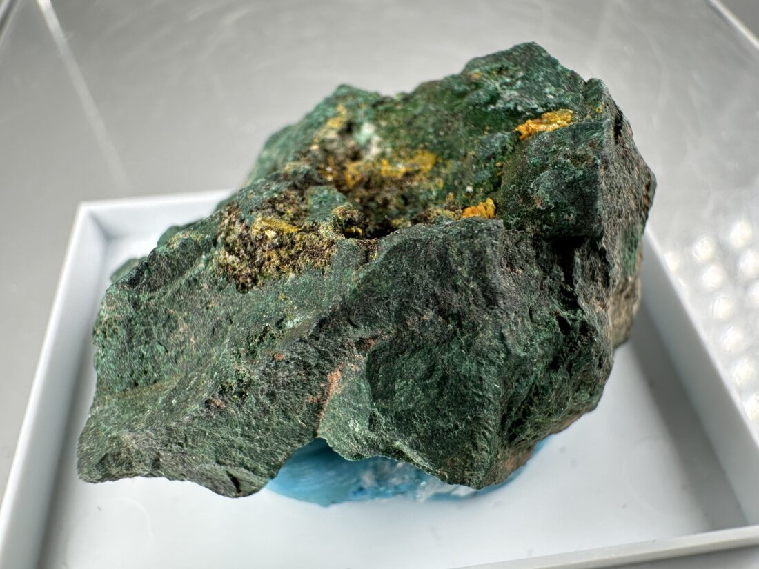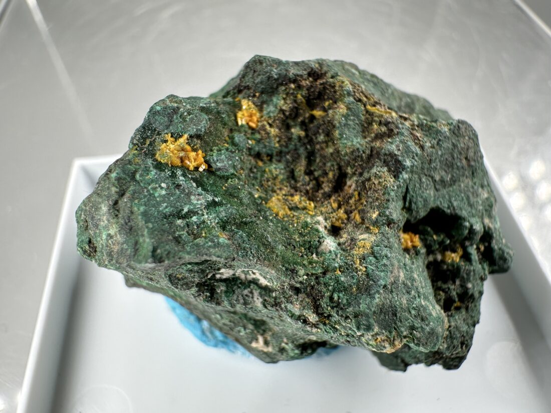 Very nice well-crystallized Kasolite and Malachite specimen from the famous Musonoi Mine, Kolwezi, Mutshatsha, Lualaba, DR Congo. Beautiful under magnification! Rare!