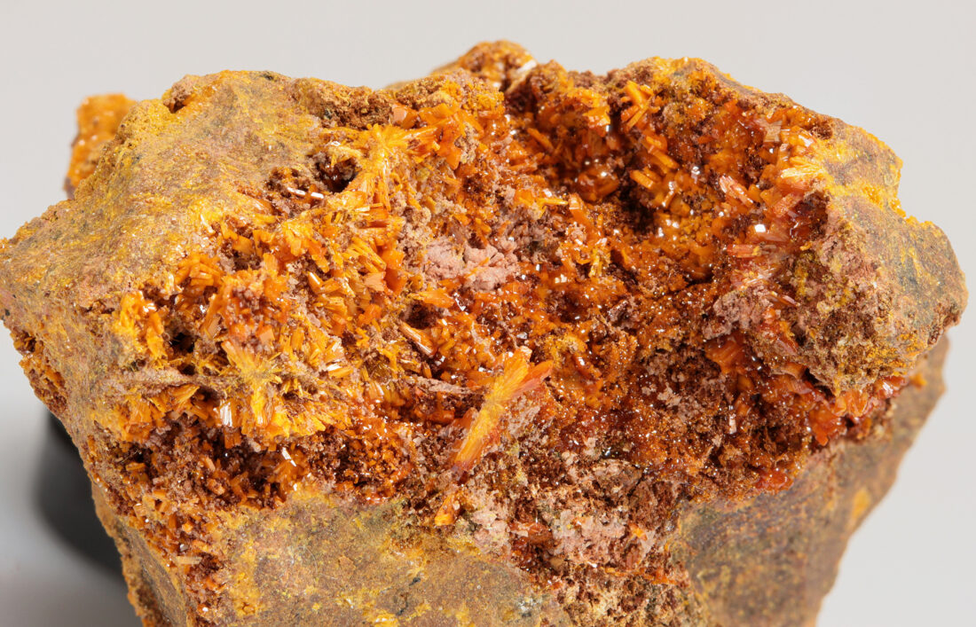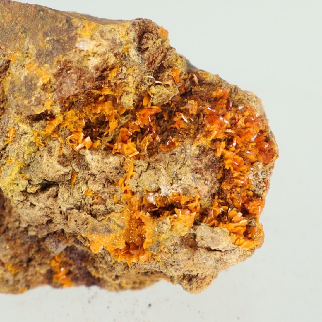 Superb, extremely well-crystallized orange kasolite specimen, from the type locality for this colorful uranium species at Swambo Hill in the DR Congo. Former Sorbonne collection with label. Fantastic for this species at the locality!! Eric Quinter specimen U/Th 0152, pictured on Mindat.org.