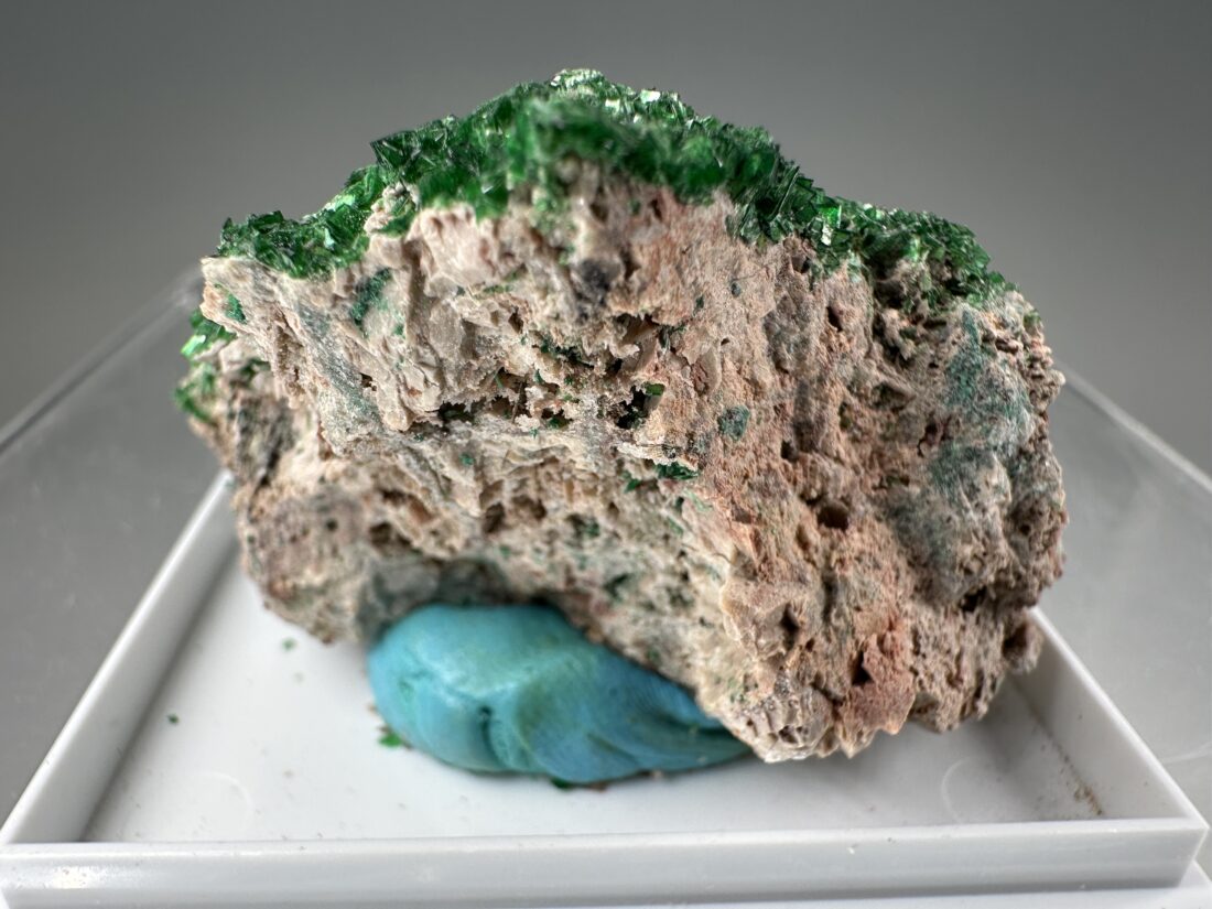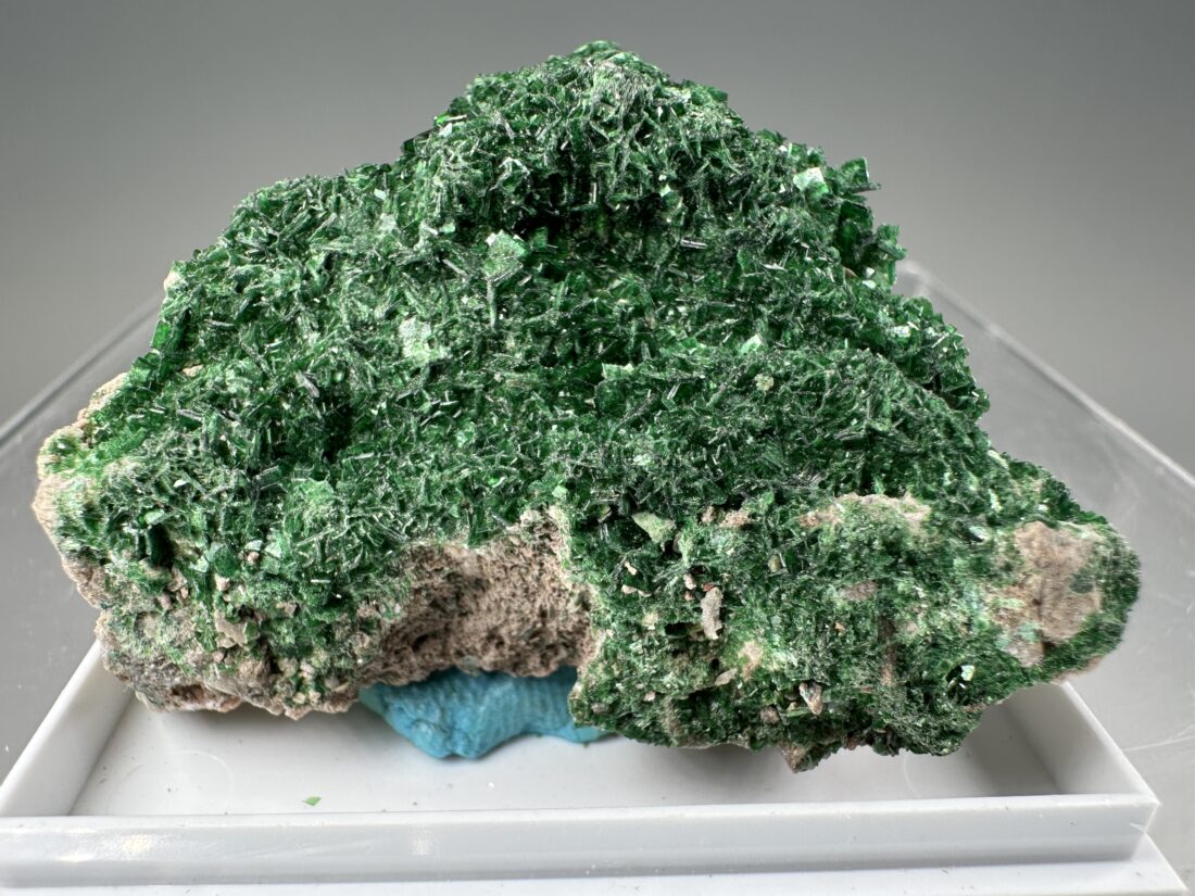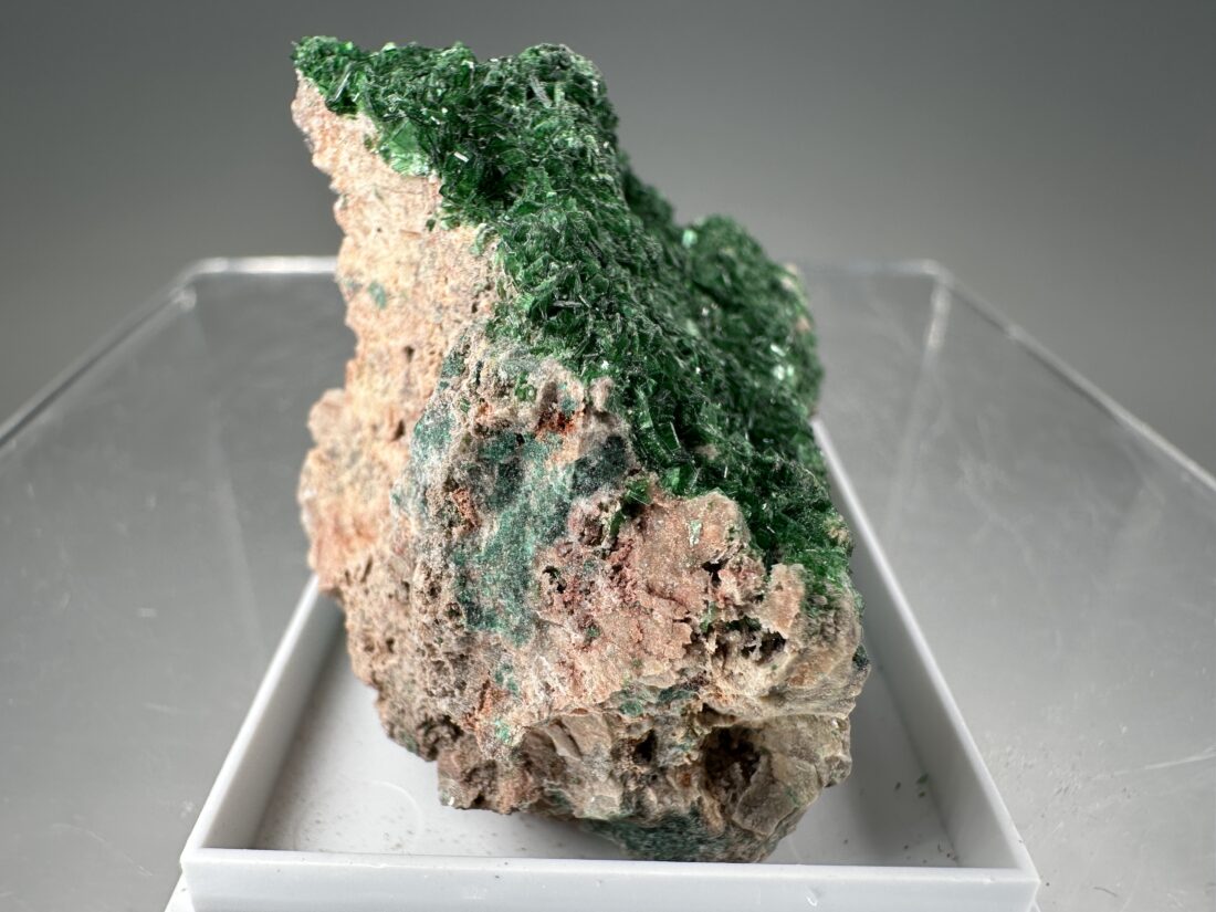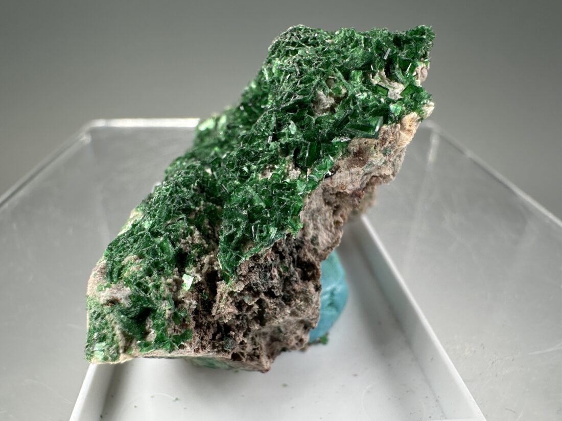 very nice well-crystallized specimen of vivid green Metatorbernite from the famous Musonoi Mine, Kolwezi, Mutshatsha, Lualaba, DR Congo. Classic!