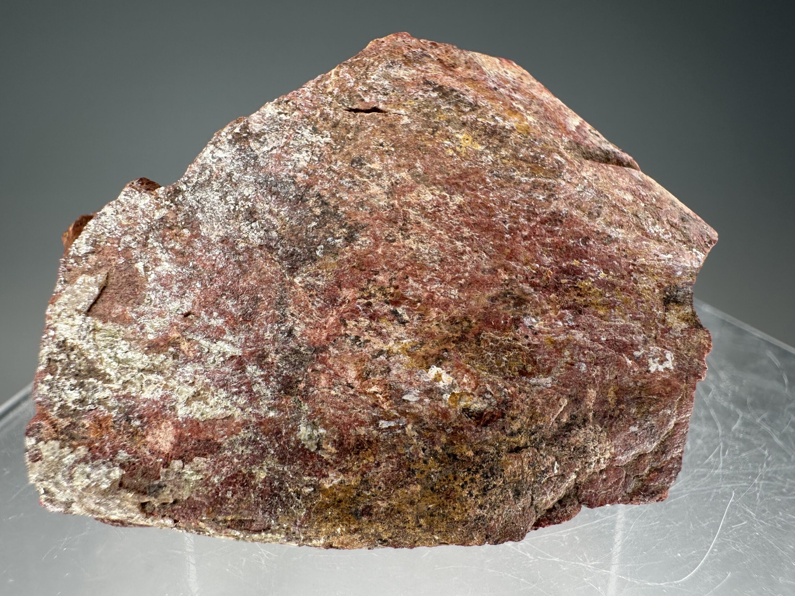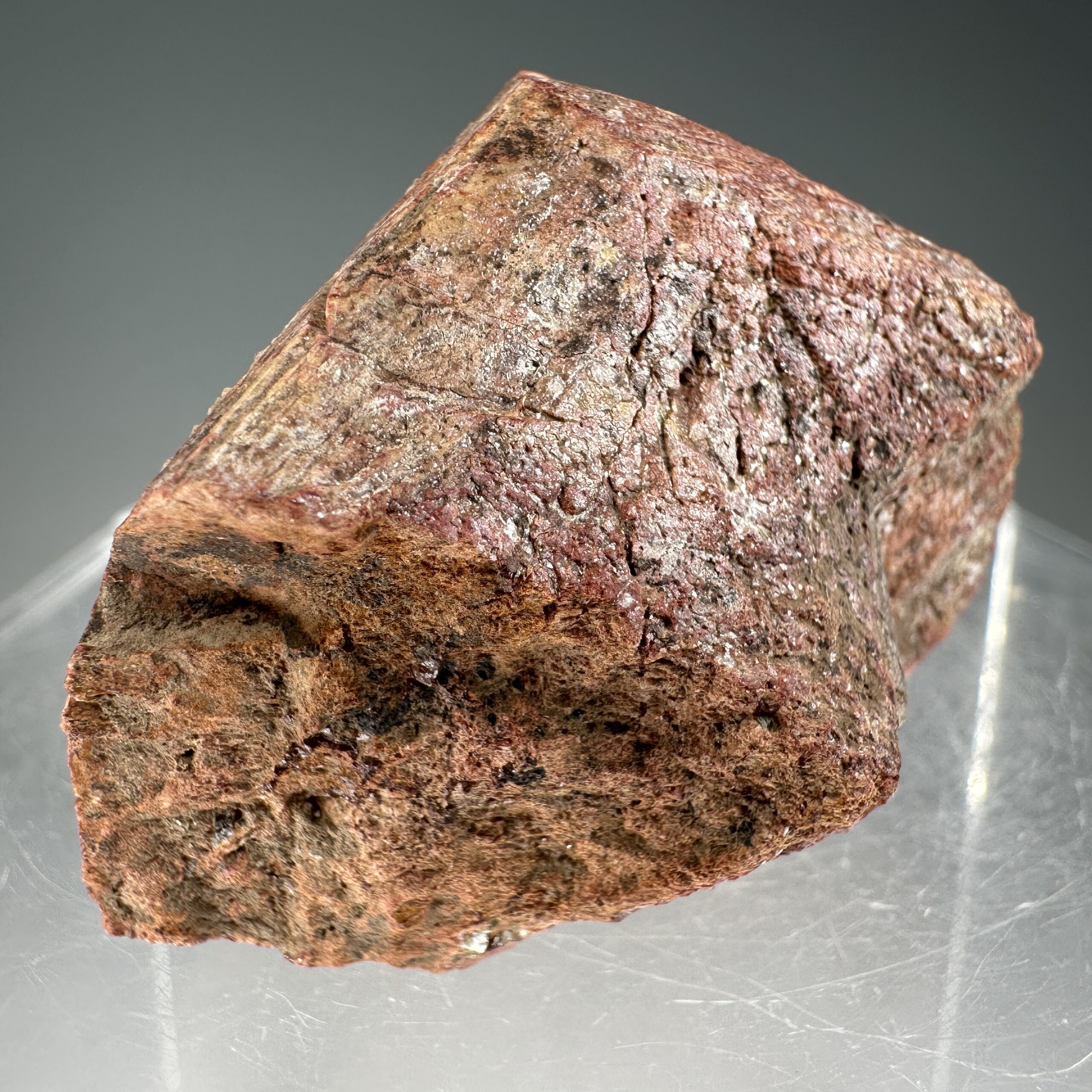 An excellent large, sharp crystal of brick-red Monazite-(Ce) from a small find last year at the North Star pegmatite in the Petaca District of northern New Mexico. Petaca has produced fine monazite crystals in the past, but these are some of the best I have seen for this classic NYF-type pegmatite district. They are large, well-formed, and in good condition, especially considering they were collected from ~1.7 billion year old pegmatites at the surface! Measures ~75,000 CPM on my Ludlum Model 3 Counter with the 44-9 probe. Rare!