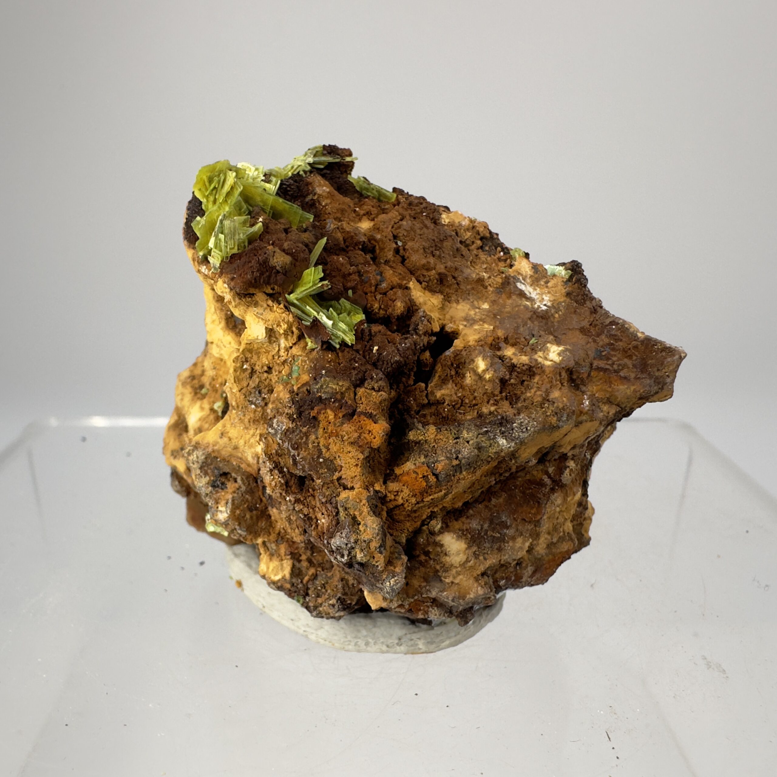 Beautiful well-crystallized lime-green Saléeite from the Cunha Baixa Mine, Cunha Baixa, Mangualde, Viseu, Portugal. Quinter Coll. # U/Th 0833, Ex. Eric Quinter Collection. Rare!
