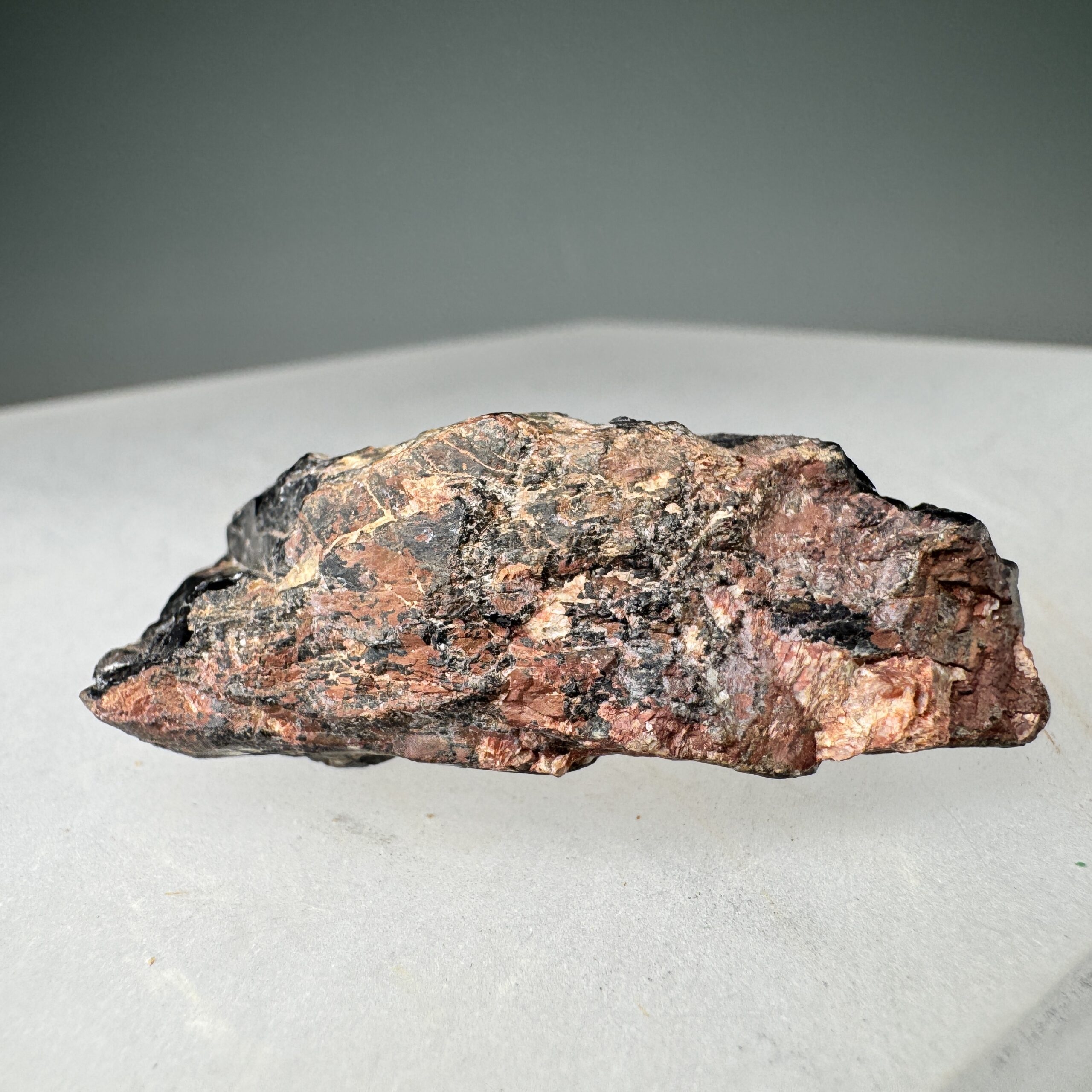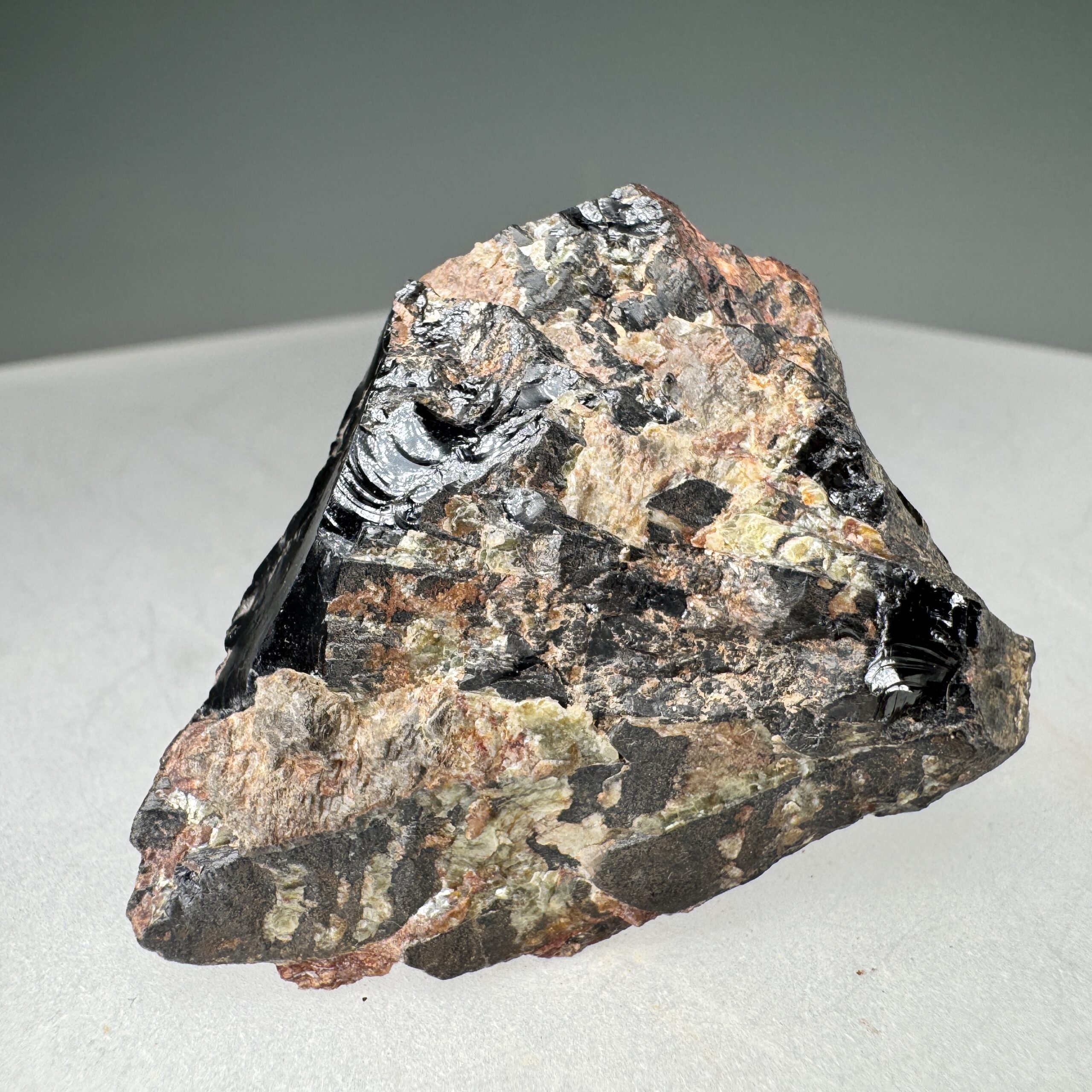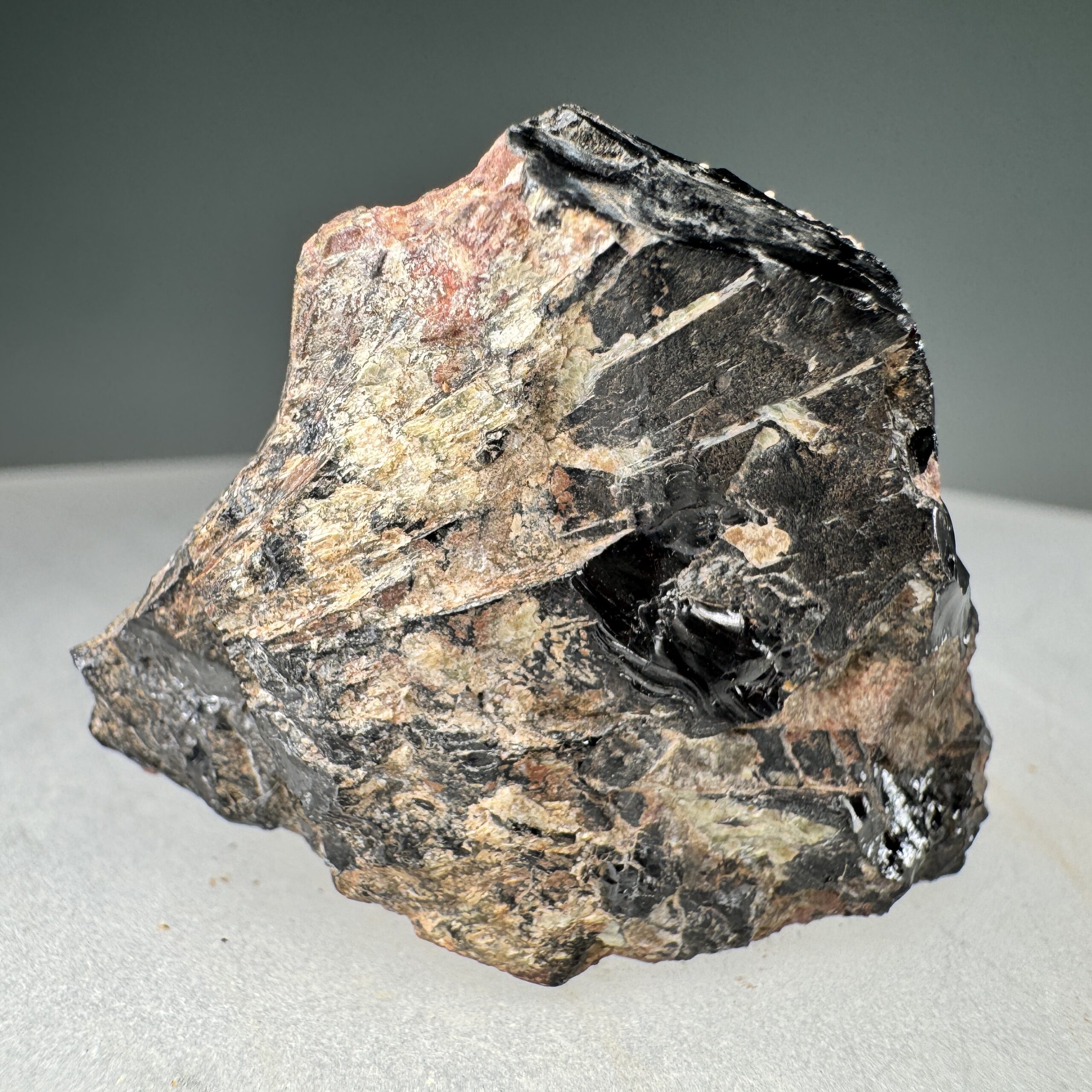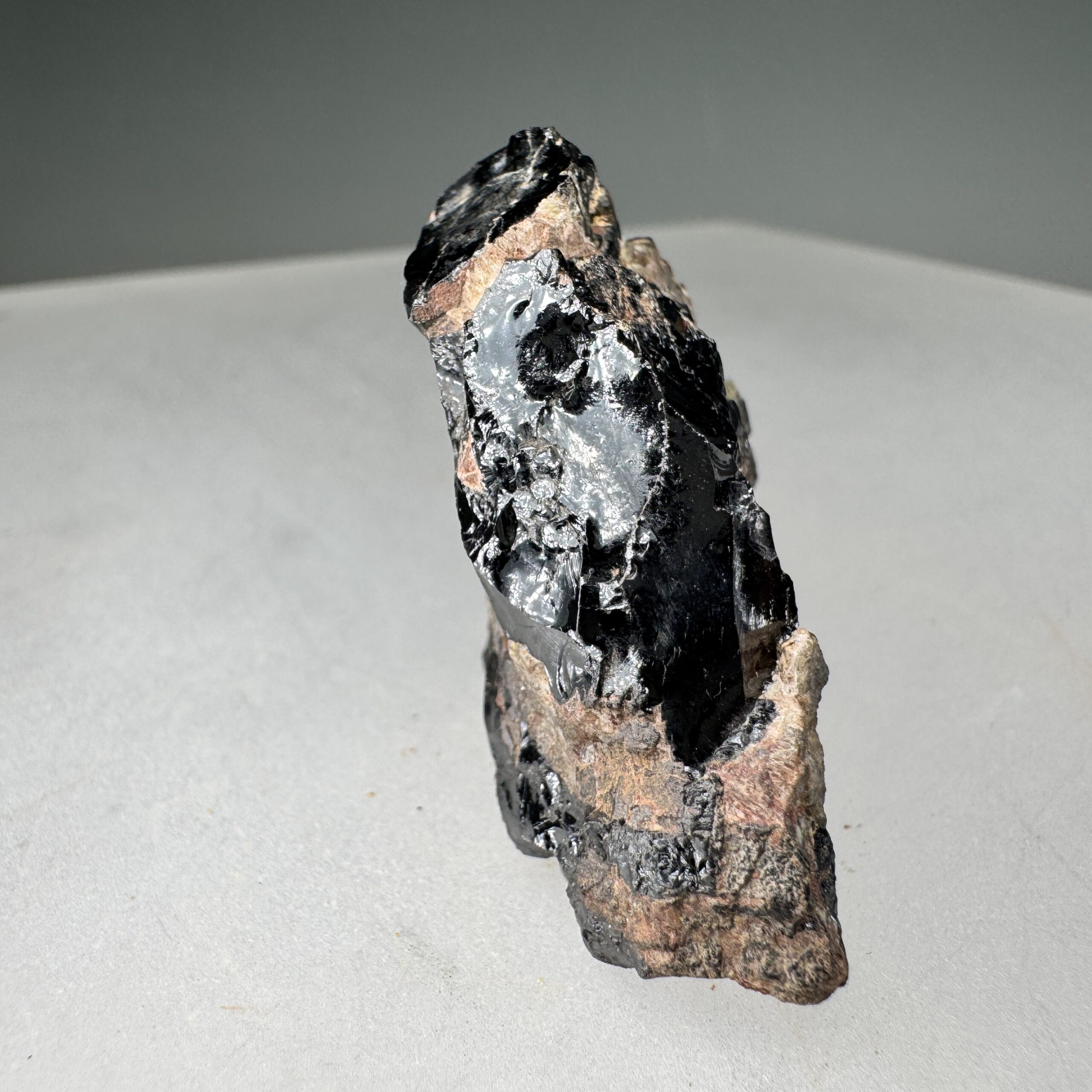 Nice solid specimen of waxy black Samarskite-(Y) showing some crude prismatic crystallization, from the Spinelli prospect, Glastonbury, Hartford County, Connecticut, USA. Nice for this species at the locality!