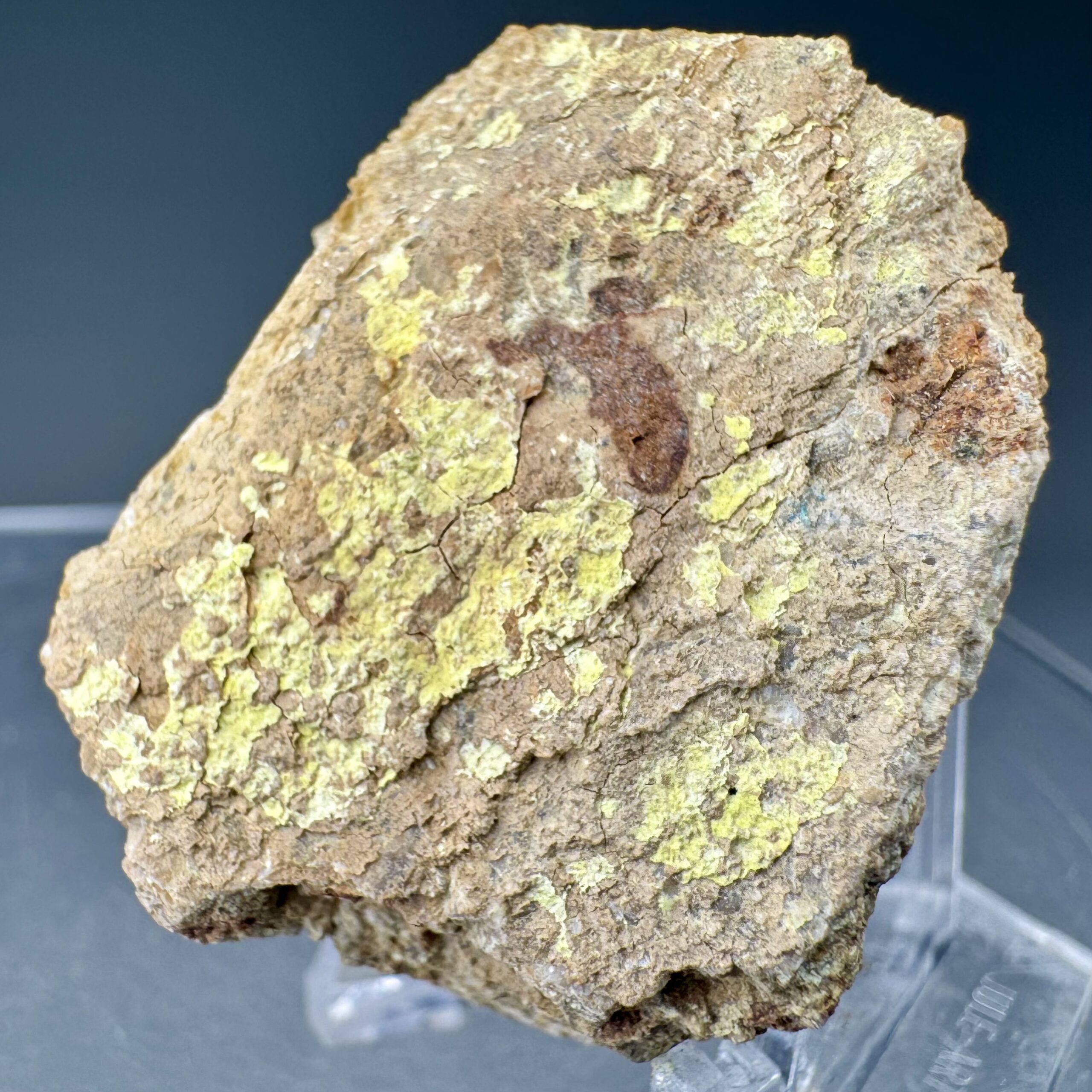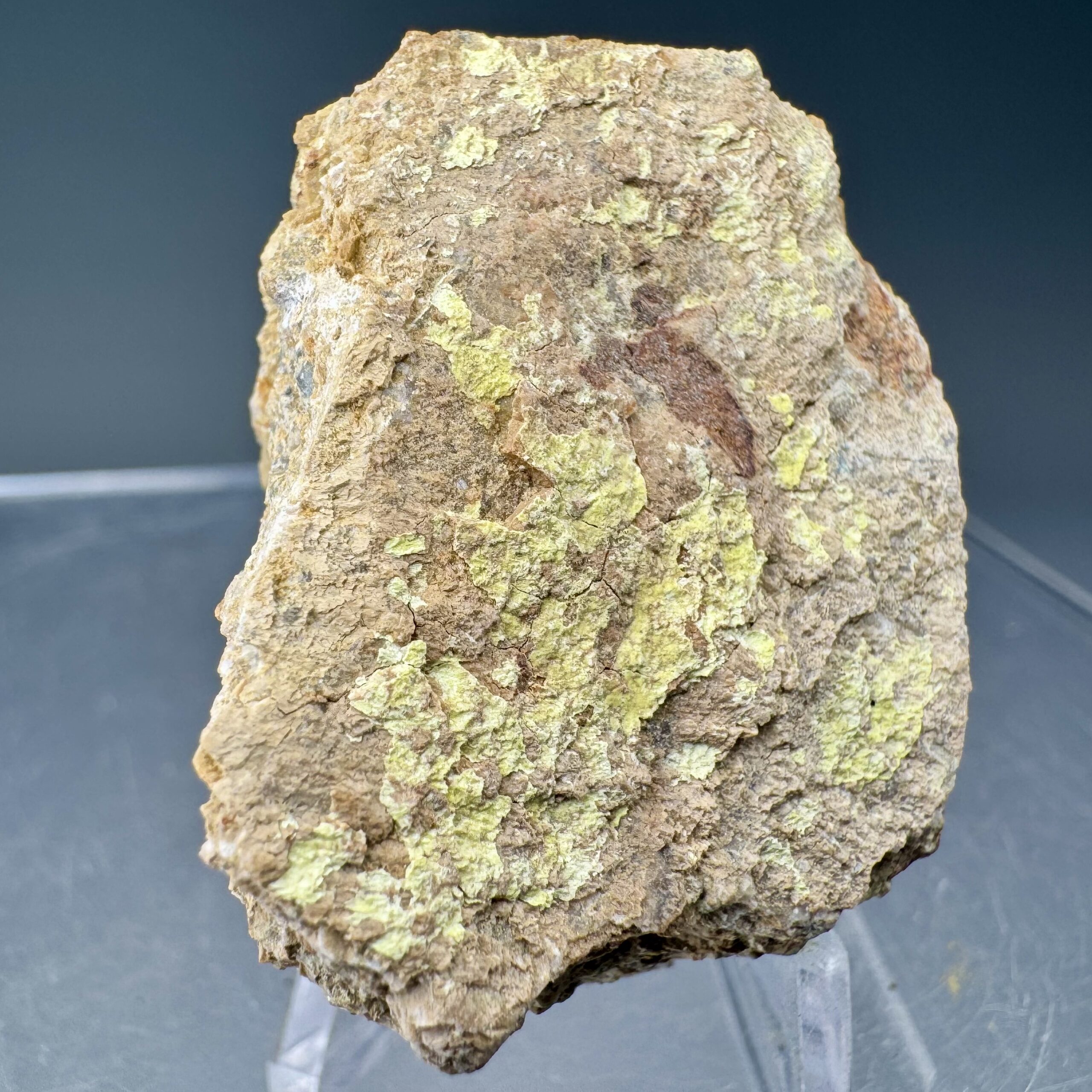 Nice specimen of brightly-fluorescent greenish-yellow Schrockingerite on matrix from Lost Creek, Wyoming. Rare!