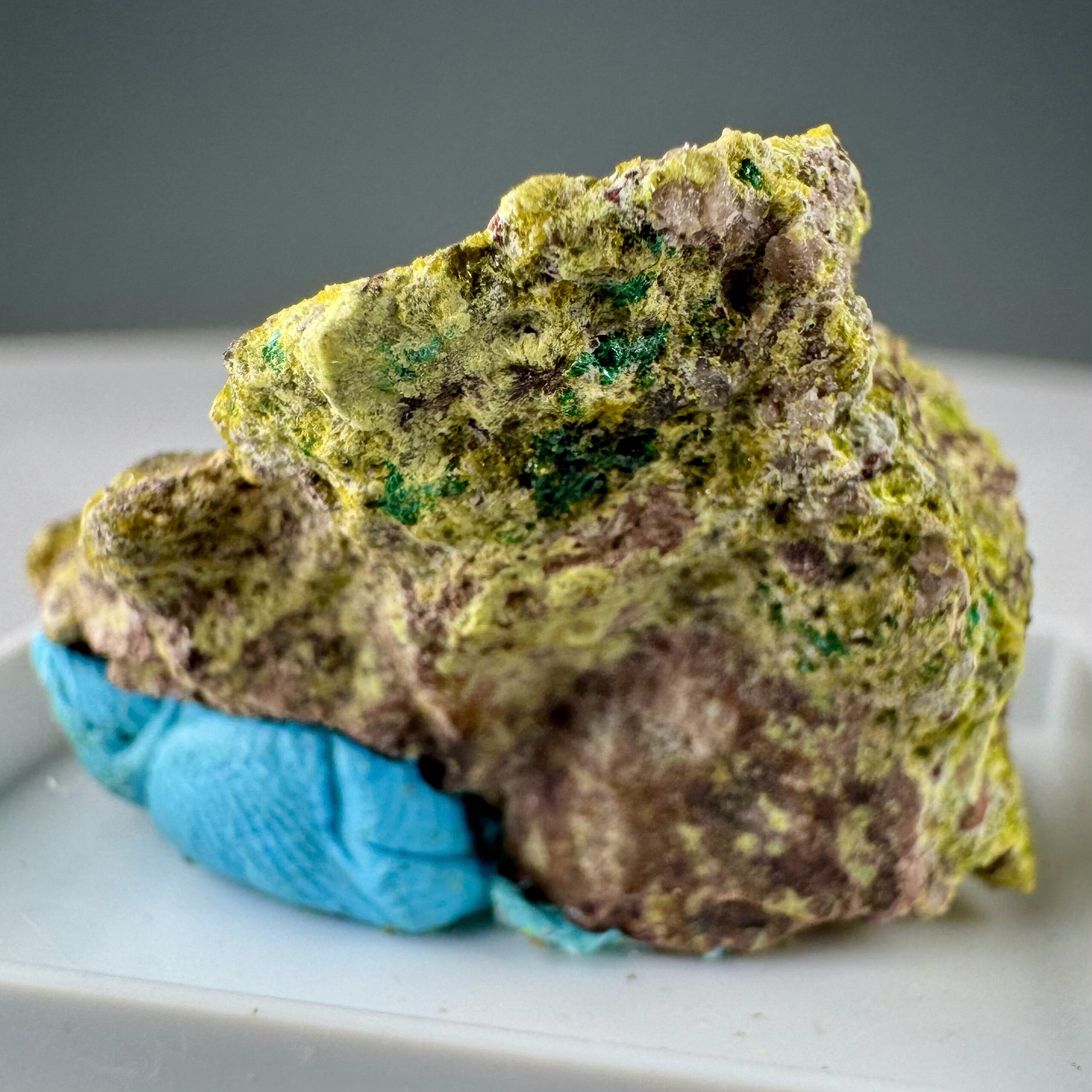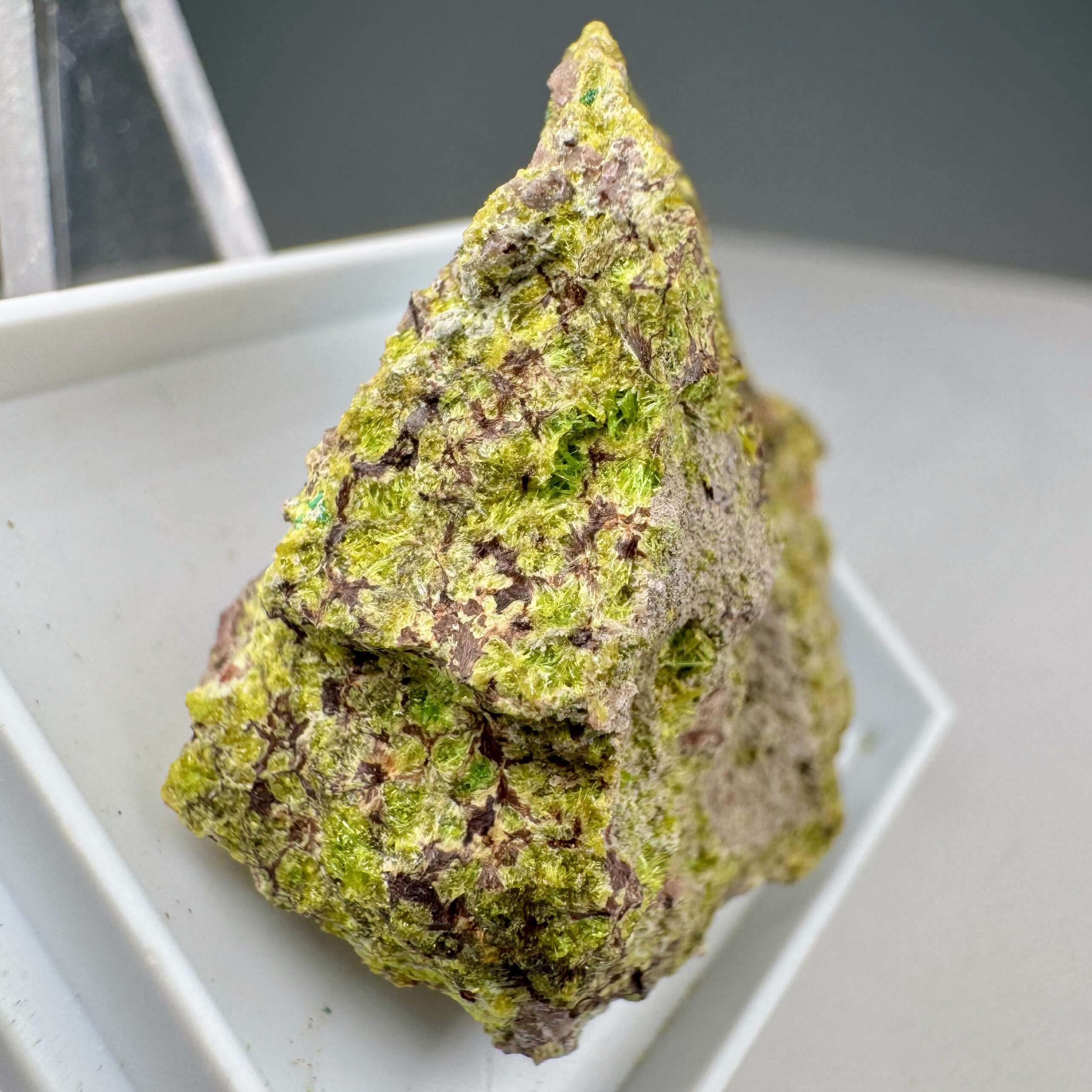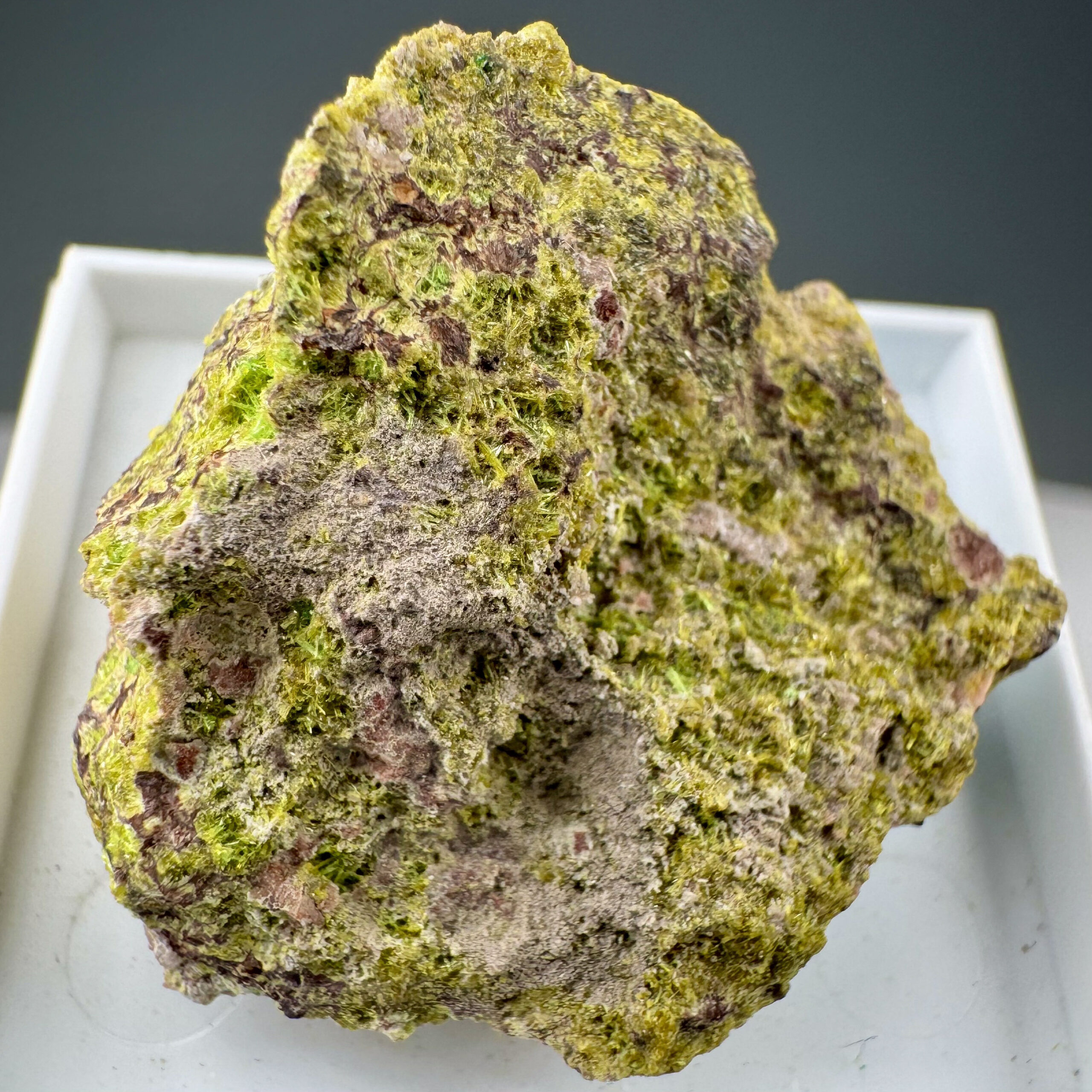 Nice small inexpensive specimen of well-crystallized yellow-green Sklodowskite and Cuprosklodowskite from the famous Musonoi Mine, Kolwezi, Mutshatsha, Lualaba, DR Congo. Rare and sought-after material!