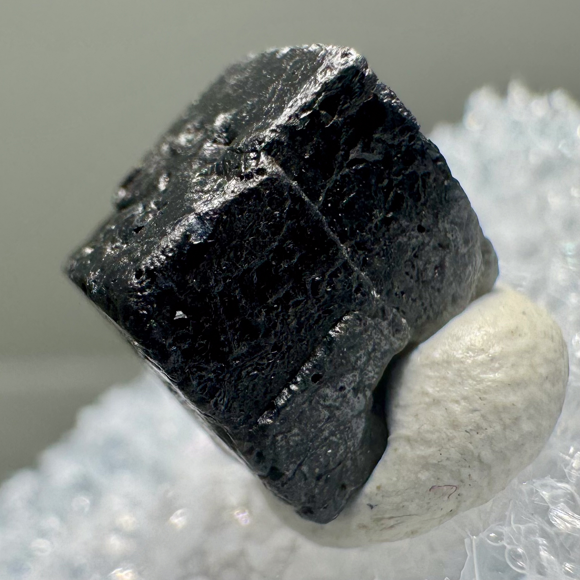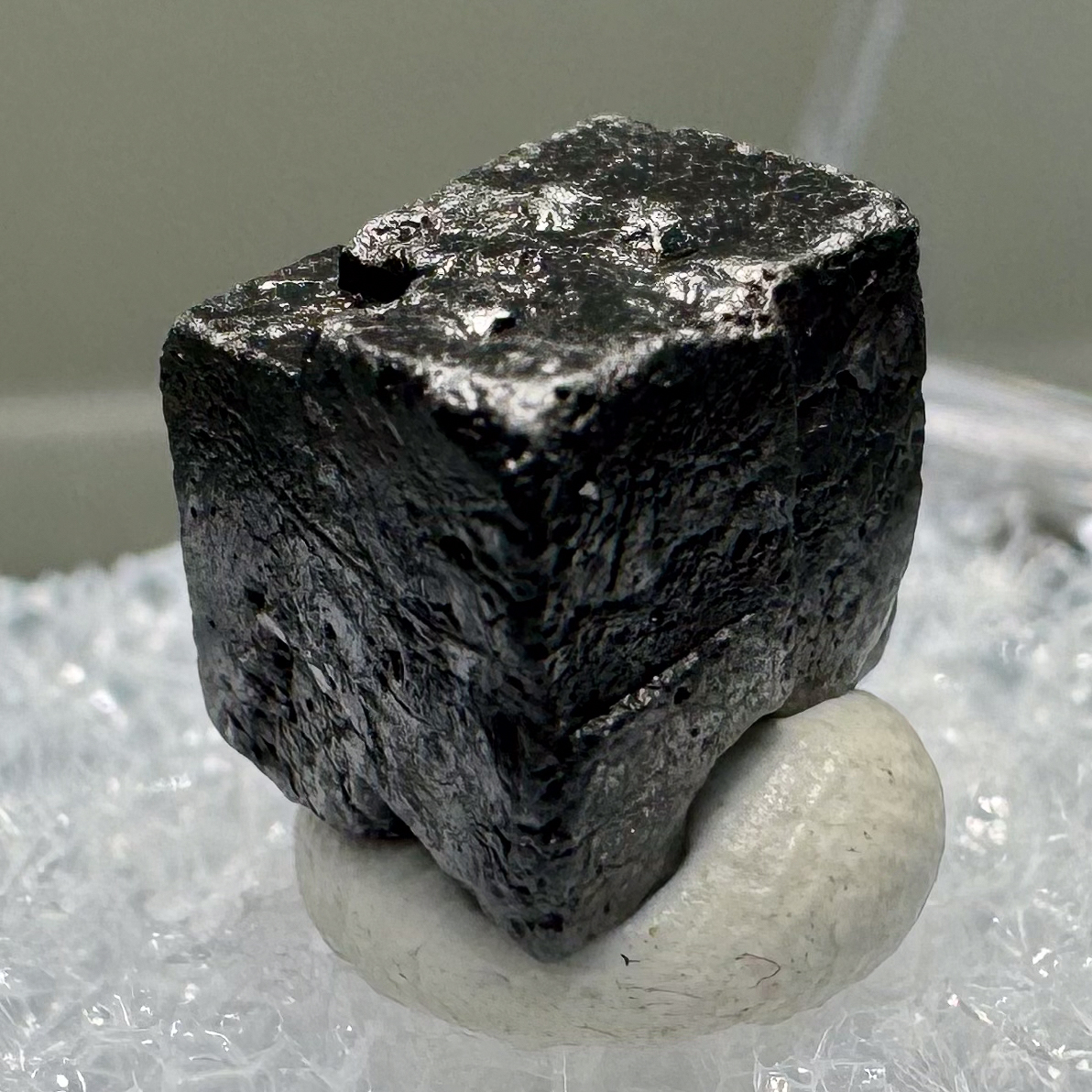 Excellent sharp single Thorianite crystal from this classic old Malagasy locality. Mounted in a perky box for display. Quite nice and impressively HOT for it’s size example of this classic find. Rare!