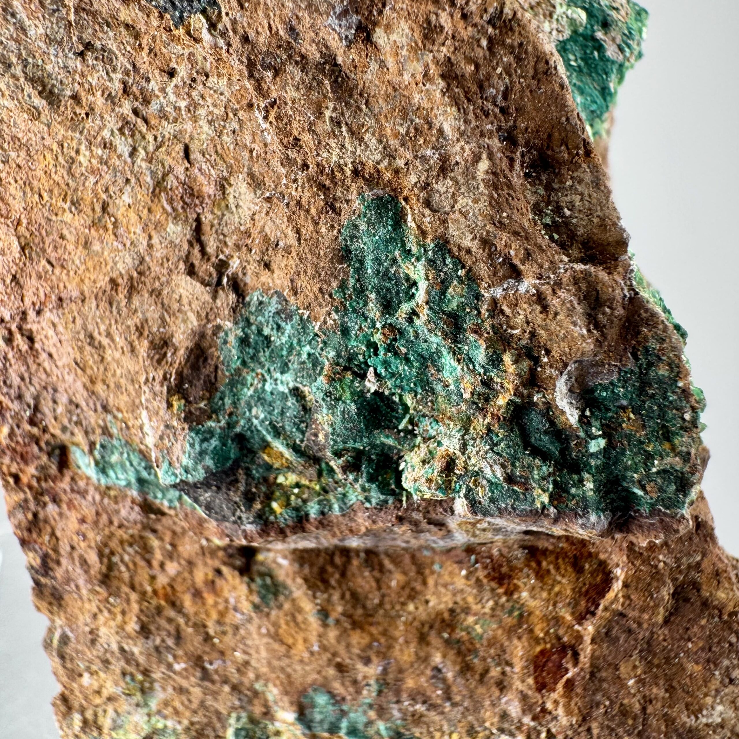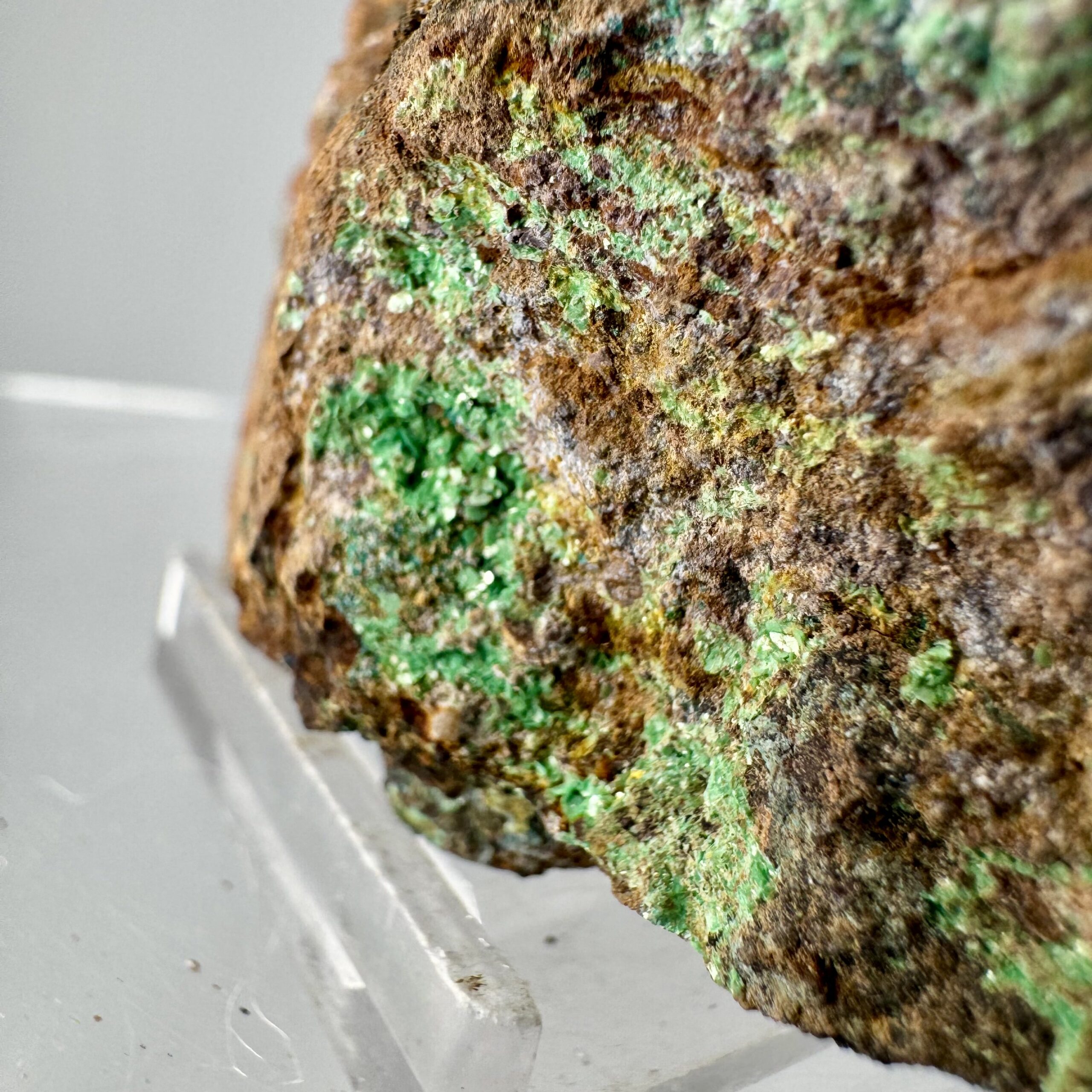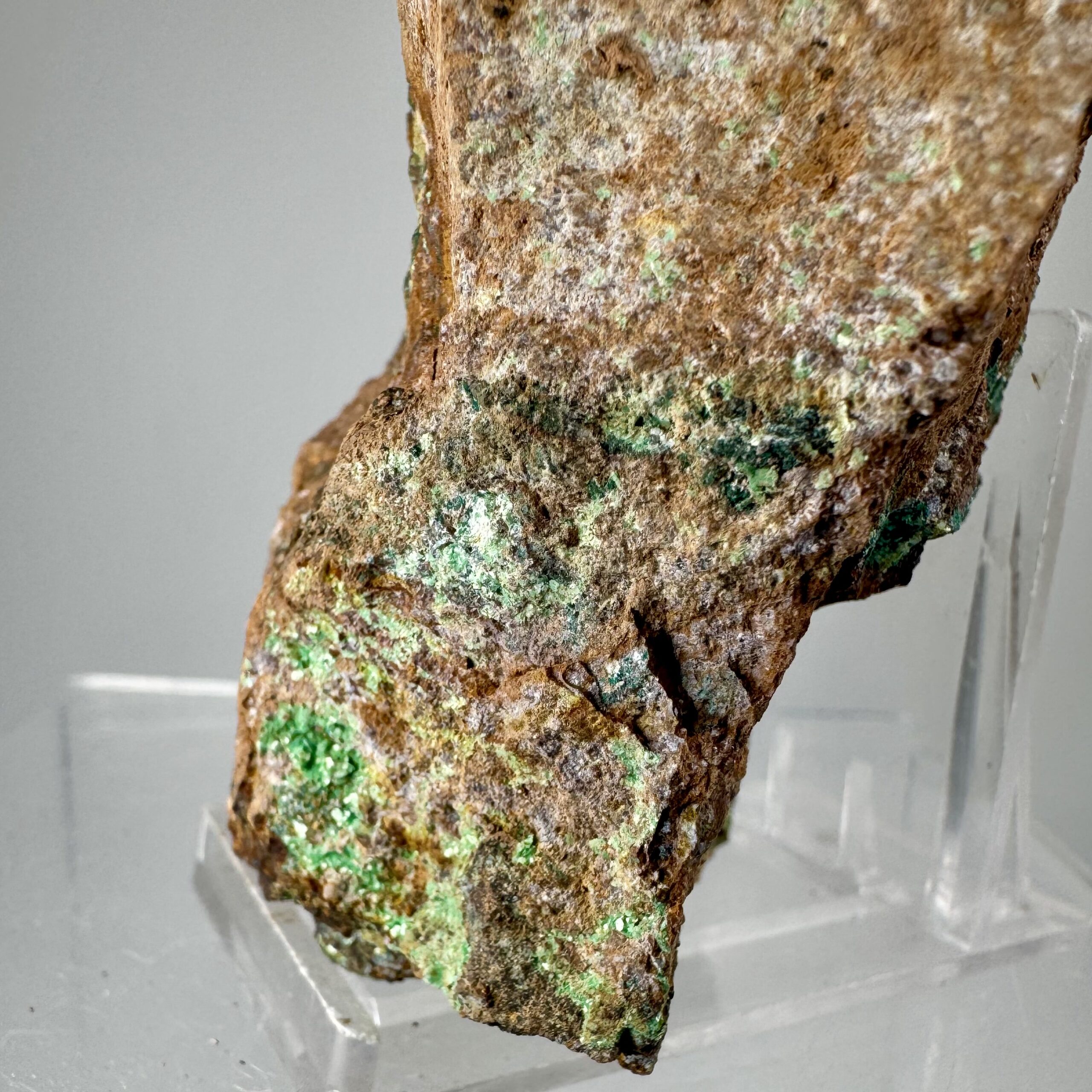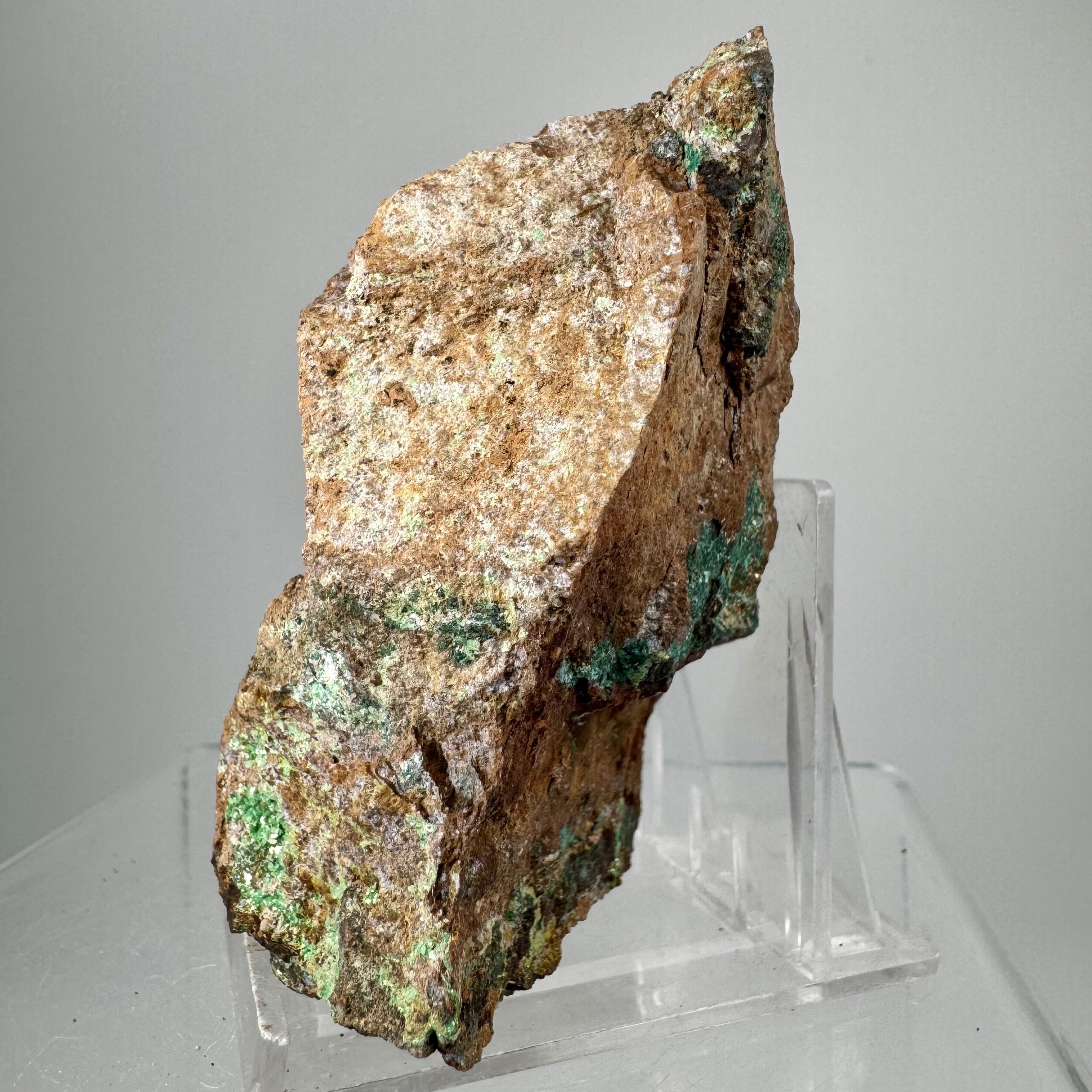 Good rich large cabinet-size specimen of bright green Torbernite on matrix from Alamos, Mun. de Alamos, Sonora State, Mexico. Rare!!
