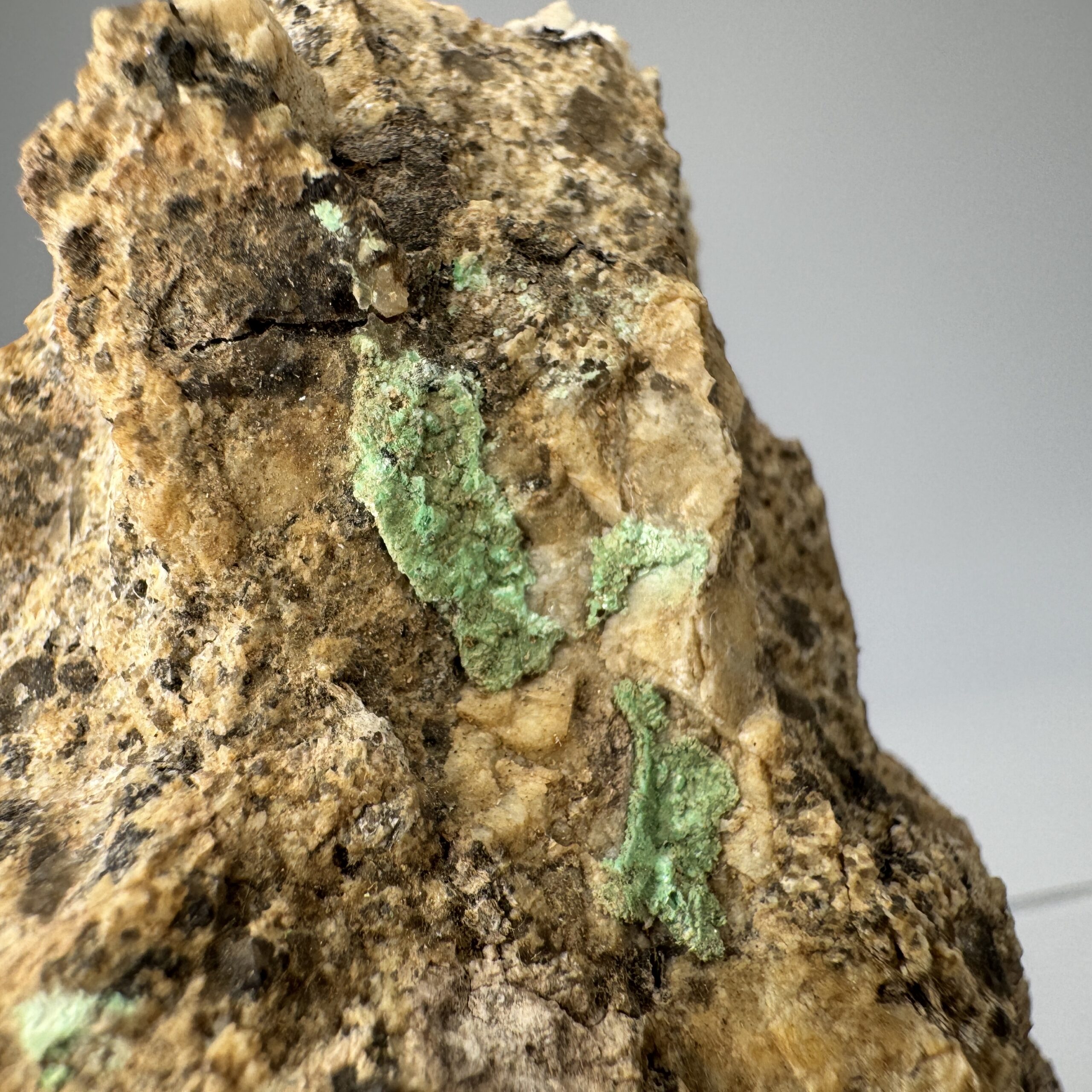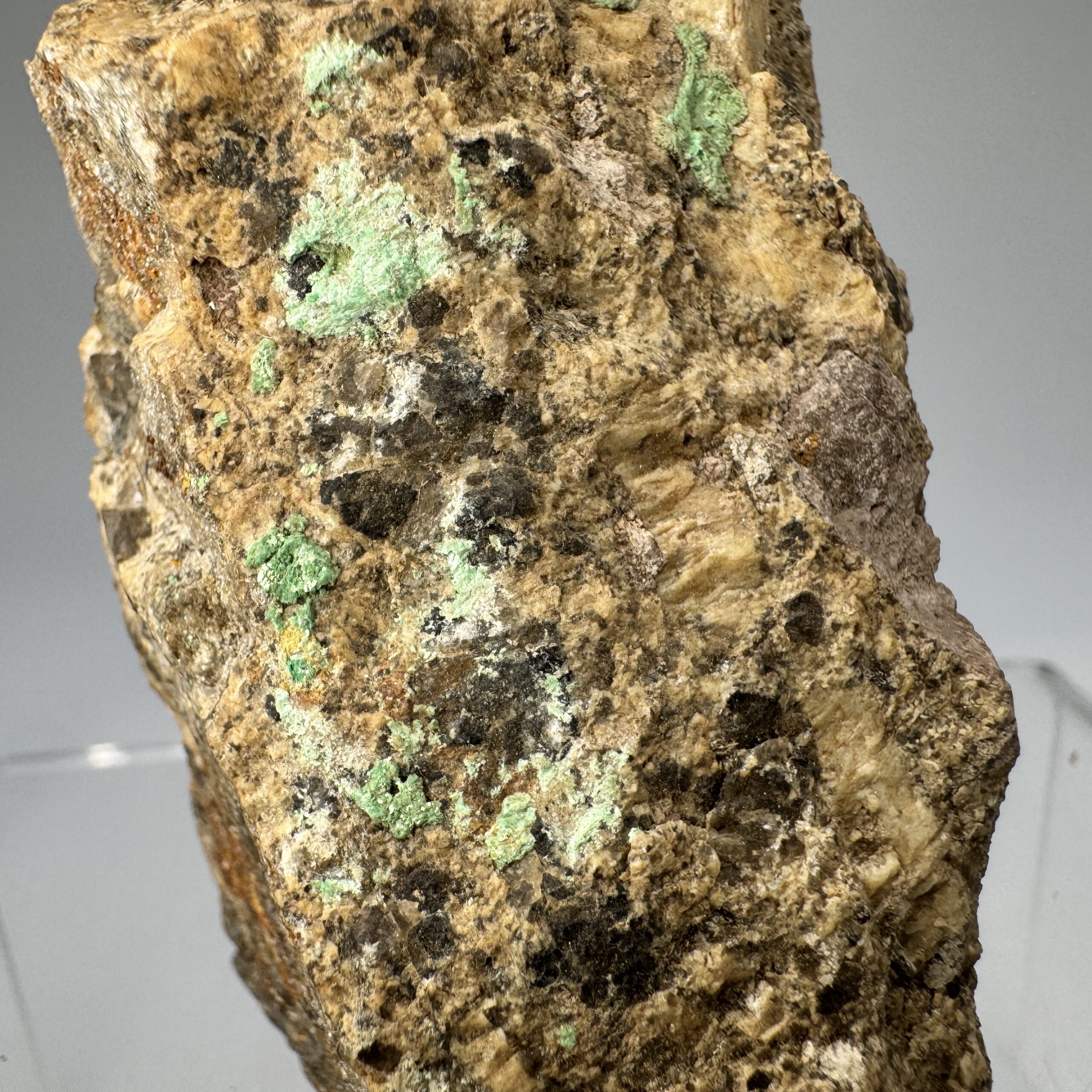 Rich cabinet-size specimen of green Torbernite on matrix from the Royal George Mine, Avoca-Royal George mining district, Northern Midlands, Tasmania, Australia. Rare locality specimen! Quinter Coll. # U/Th 0054, Ex. Eric Quinter Collection.