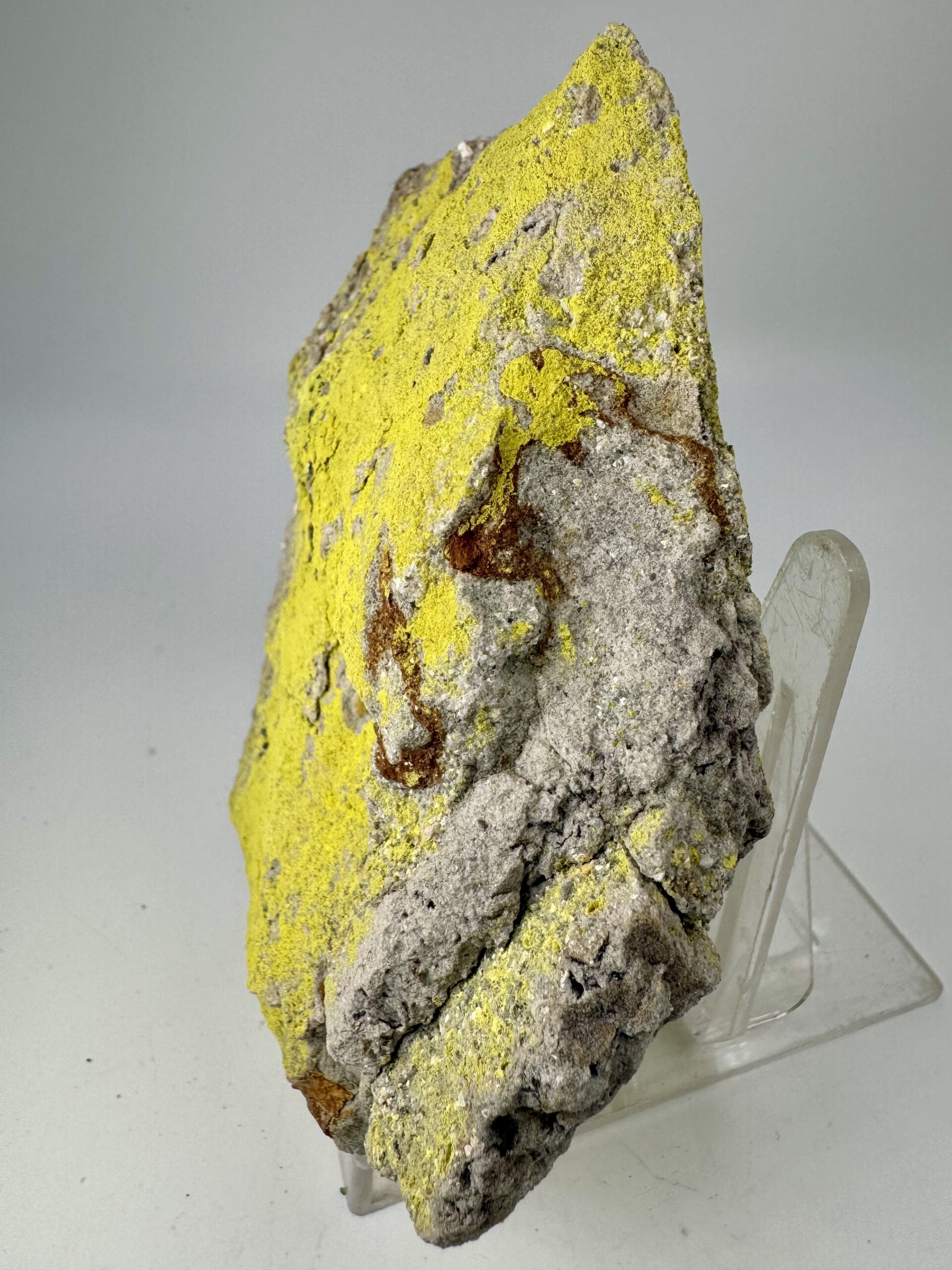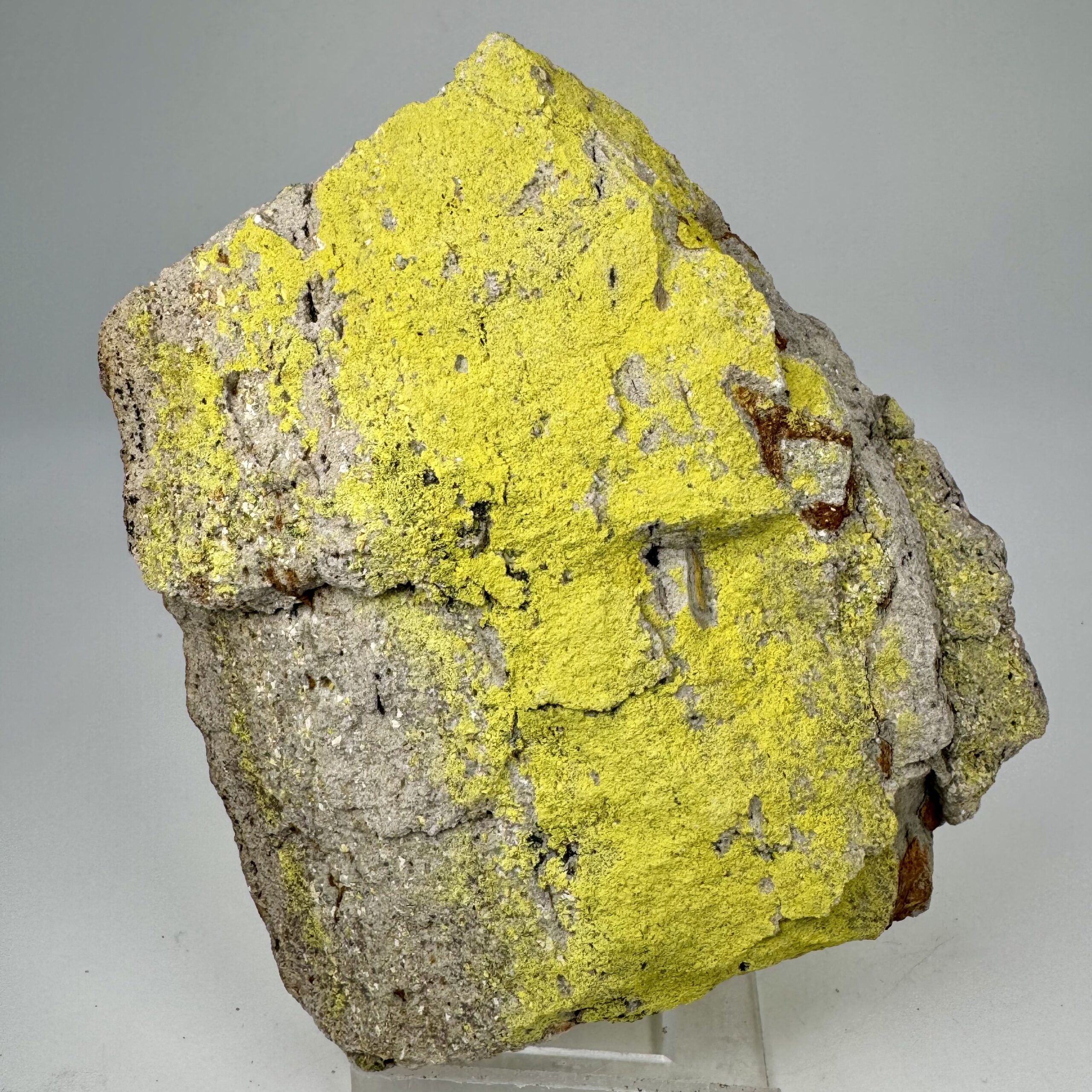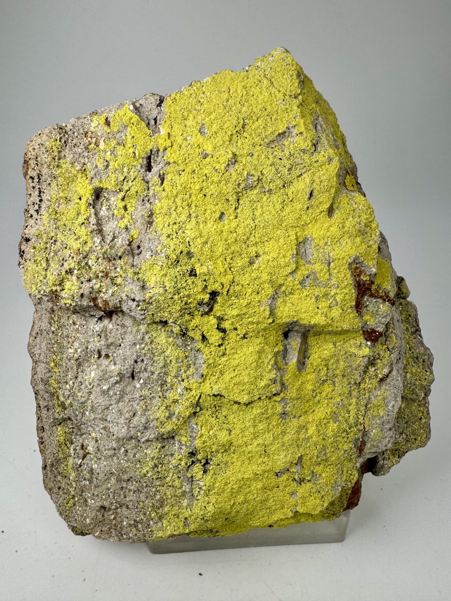 Rich large cabinet-size specimen of colorful, bright yellow Tyuyamunite from the Jo Dandy Mine, Paradox Valley, Montrose County, Colorado, USA. Rare!