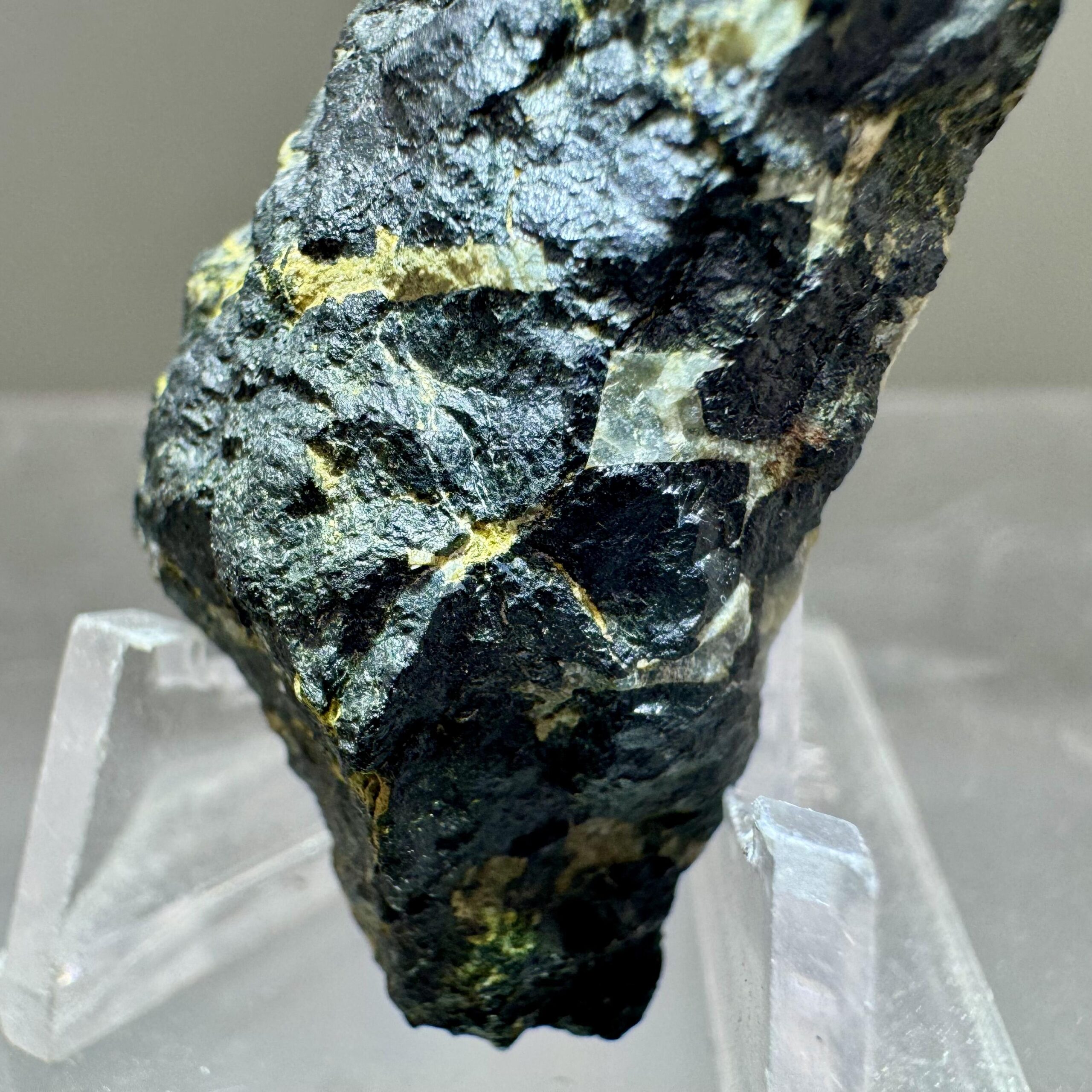 Very solid specimen of Uraninite from the famous Chestnut Flats Mine near Spruce Pine, Mitchell County, North Carolina, USA. Measures ~100,000 CPM on my Ludlum Model 3 Counter with the 44-9 probe. Rare!!