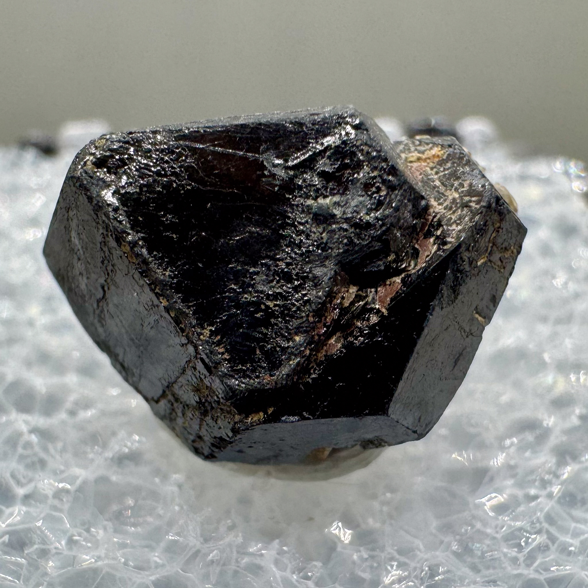 Excellent thumbnail-size specimen of sharp, lustrous dodecahedral Uraninite crystals from the world-famous Swamp Quarry in Maine, USA. These have gotten very hard to find on the market in this quality and this is a nice one! Measures ~60,000 CPM on my Ludlum Model 3 Counter with the 44-9 probe. Rare!!