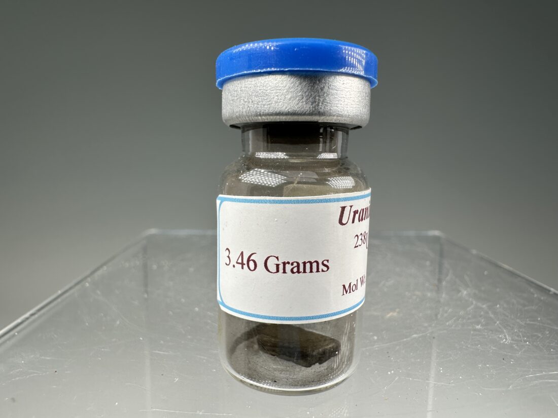Nice sample of depleted uranium metal in a sealed vial. Hard to find on the market these days for sale especially at a reasonable price point! Obviously like any metal this needs to be handled and stored appropriately. Nice opportunity for the serious chemist, element collector, or collector of radioactive minerals!