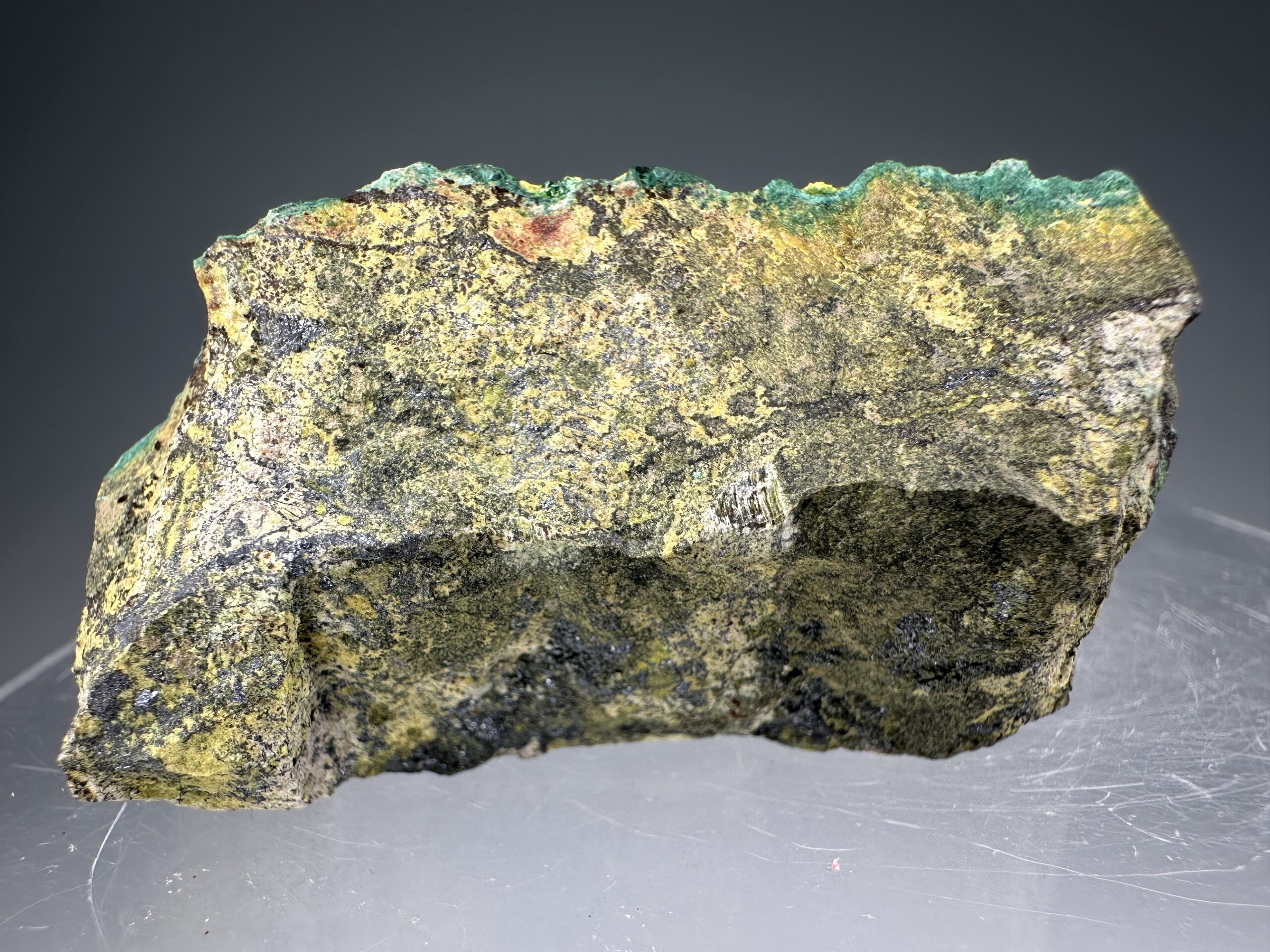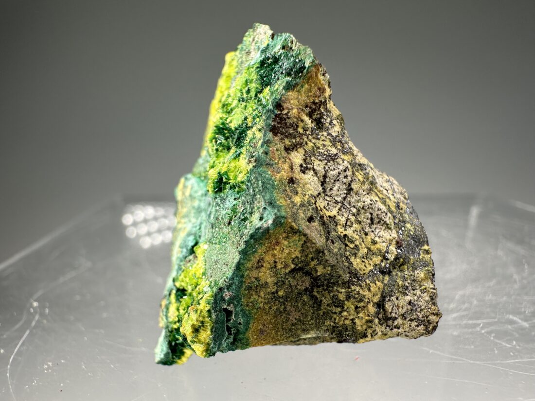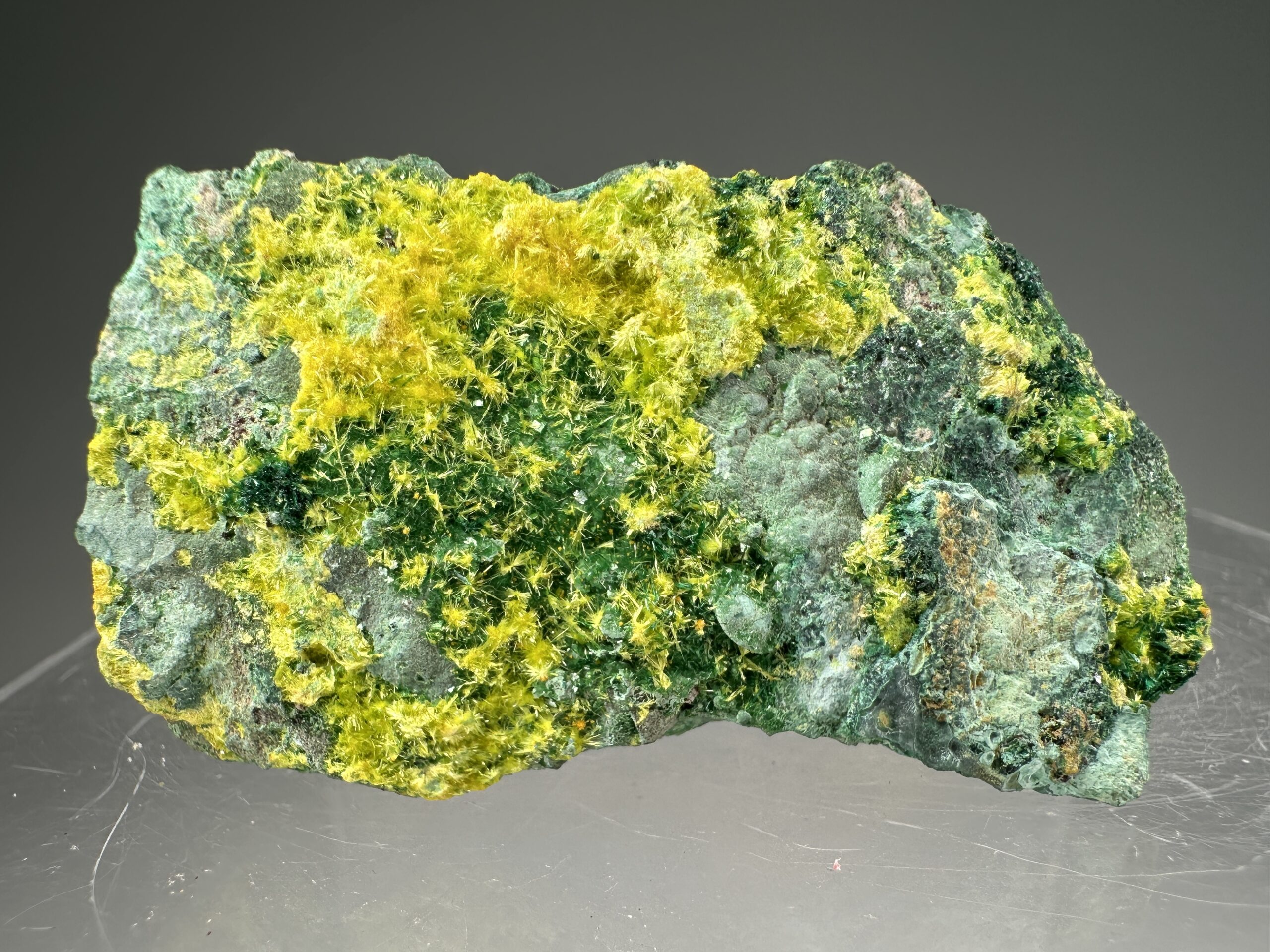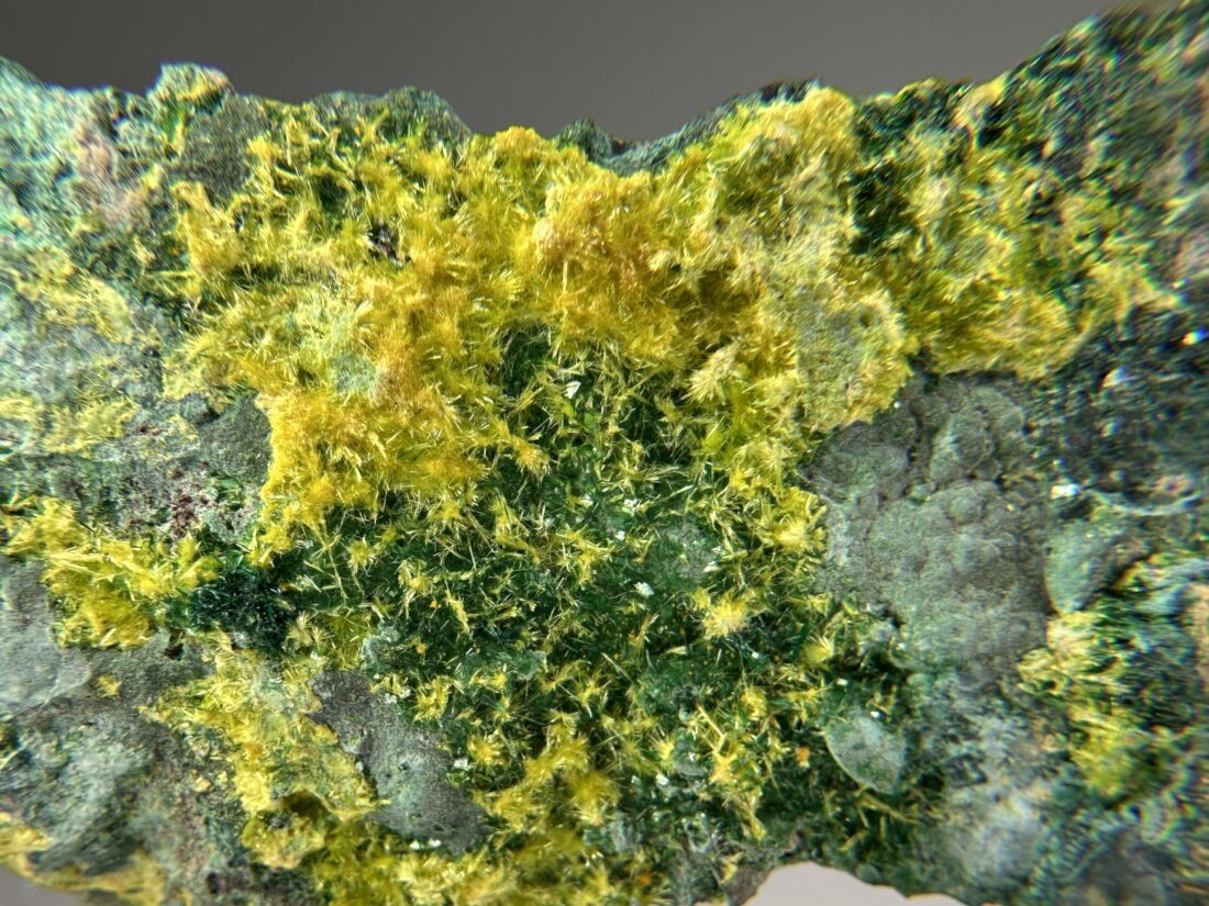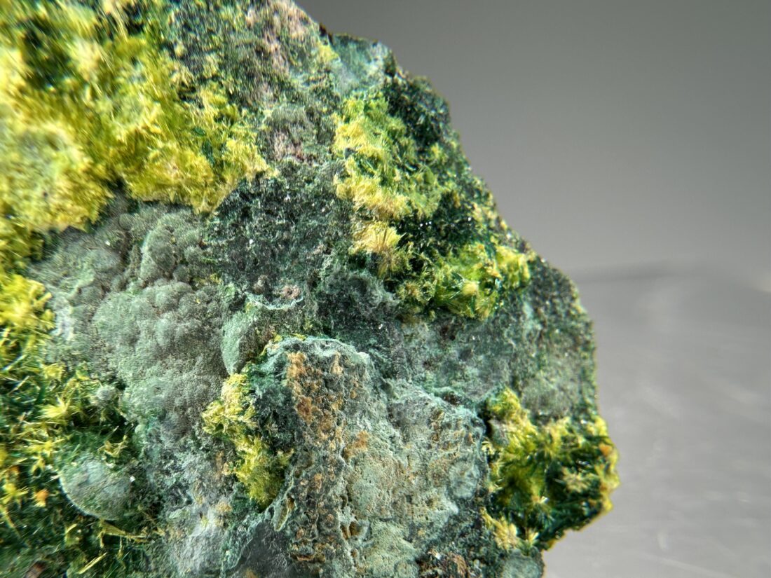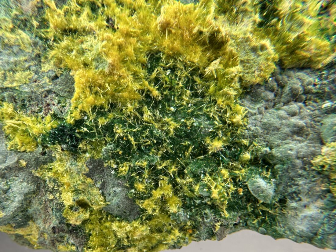 Fine, colorful, and well-crystallized specimen of Uranophane, Kasolite, Metatorbernite from the famous Musonoi Mine, Kolwezi, Mutshatsha, Lualaba, DR Congo. Rare!!