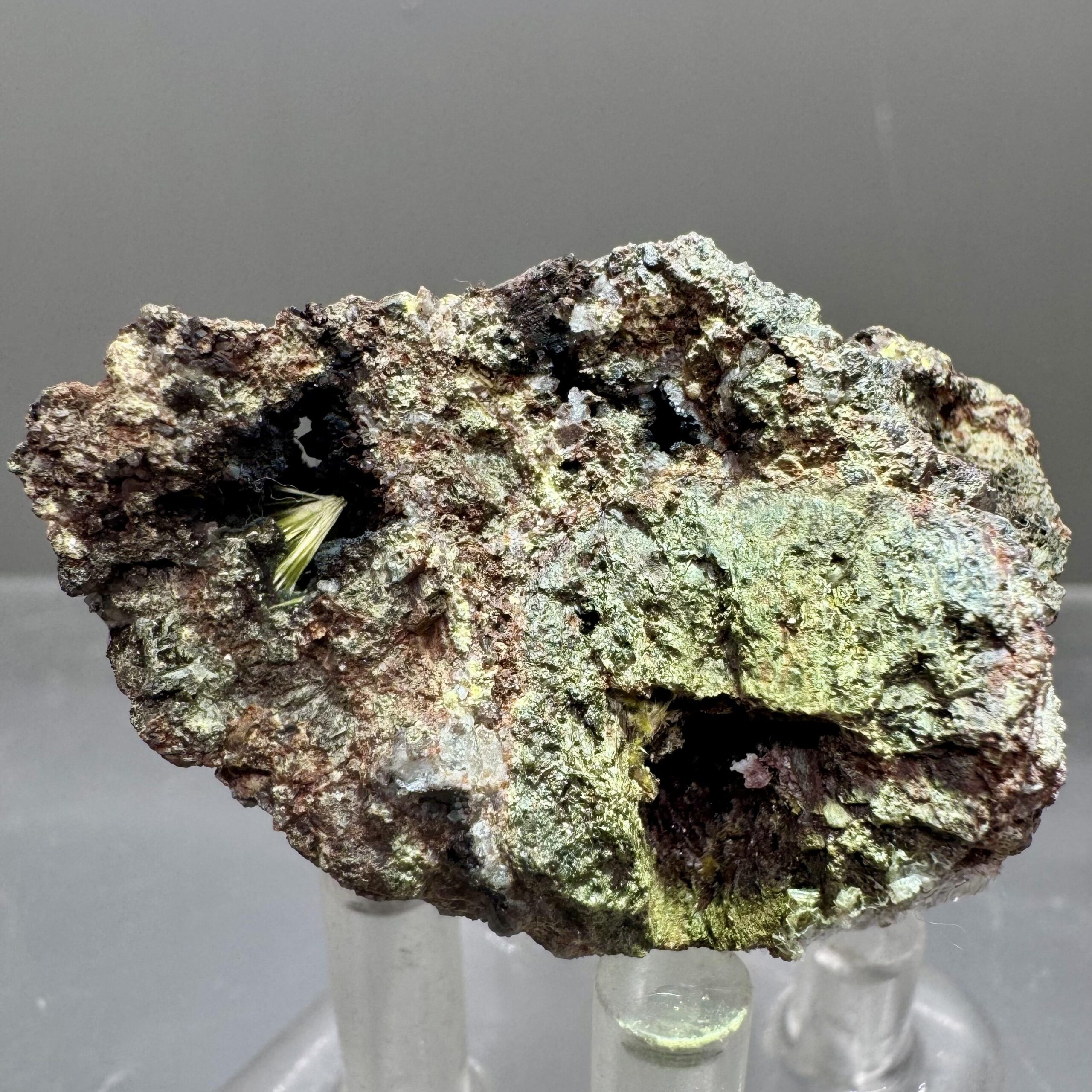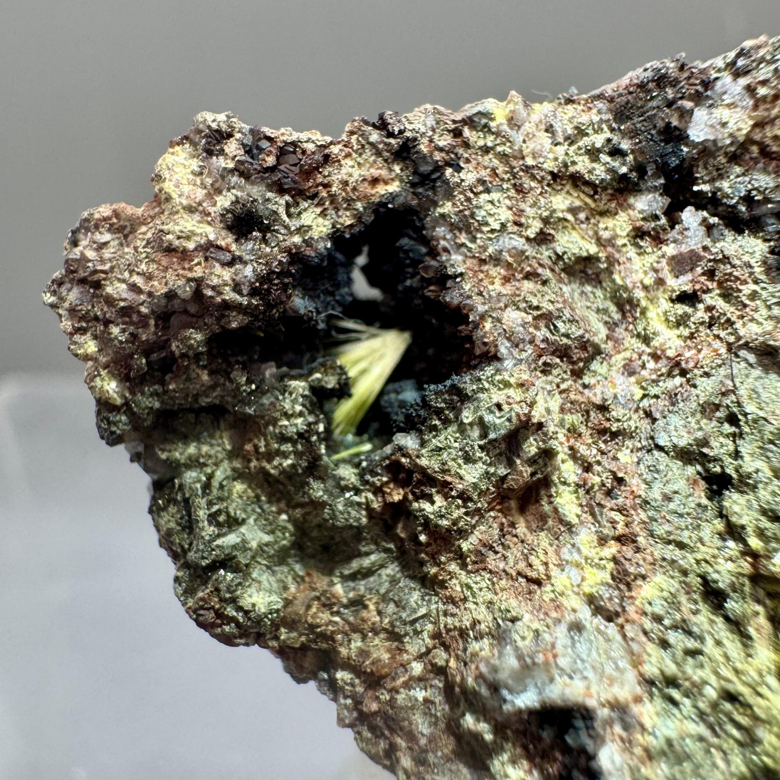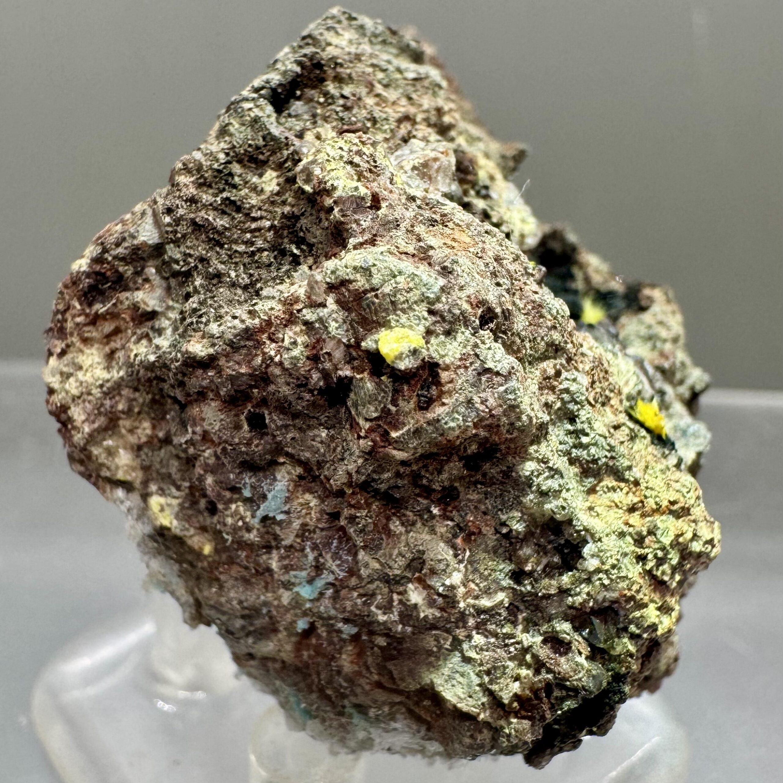 Nicely-crystallized specimen of bright yellow uranophane on iron-rich matrix from the famous Madawaska (Faraday) mine in Ontario Canada. Rare!!