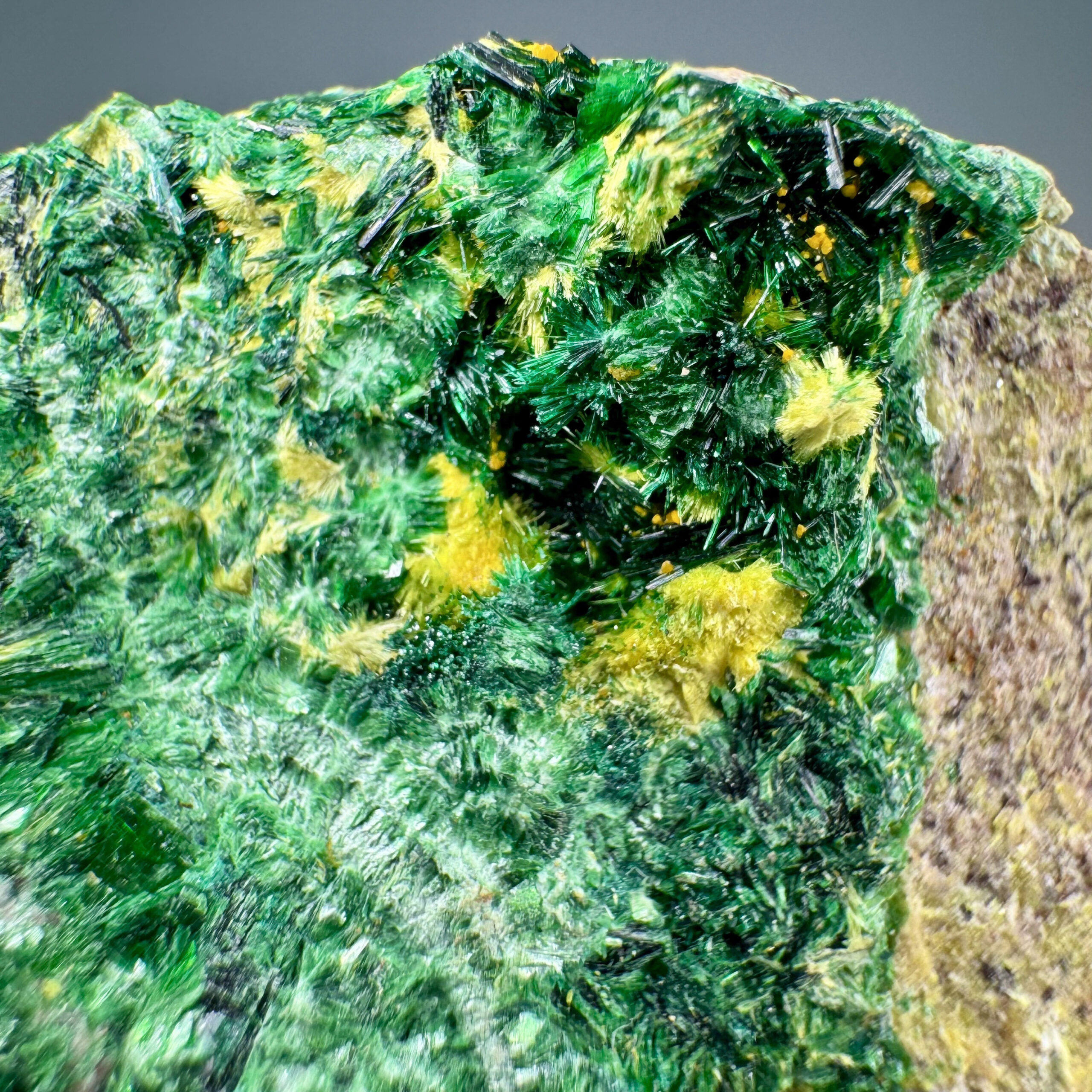Species: Uranophane, Torbernite, Malachite