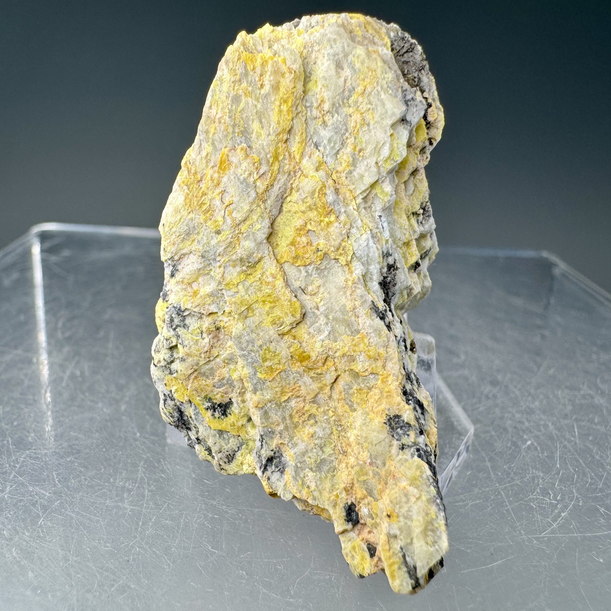 Nice rich specimen of yellow Weeksite on rhyolite matrix from Topaz Mountain, Utah. Rare locality for this mineral!